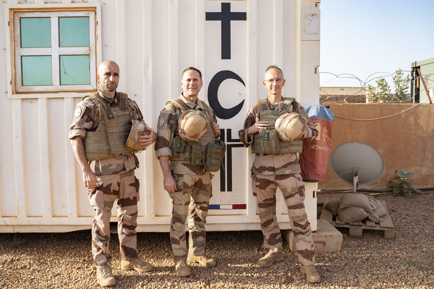 Father Florent, Pastor Olivier and Imam Johan are the three military chaplains of the Barkhane operation for four months. They all officiate in the same area of the French military camp at the Gao base in Mali. Although they share the same office, they each have a specific place of worship set up under a tent. Each one organises its own prayer times and receives its faithful for religious celebrations, meals or moments of exchange. Their mission within the armed forces is to provide spiritual support to believers and moral support to all those who feel the need.