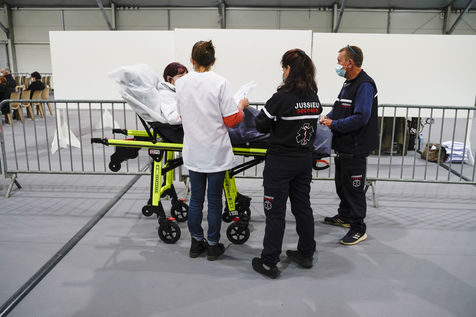 Parcours de vaccination contre la covid-19 pour une personne venant se faire injecter le vaccin Moderna dans le vaccinodrome de Saumur, le 12 mai 2021.
