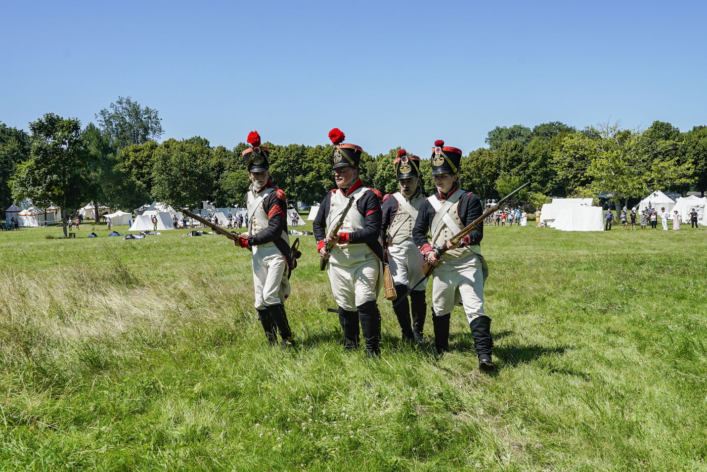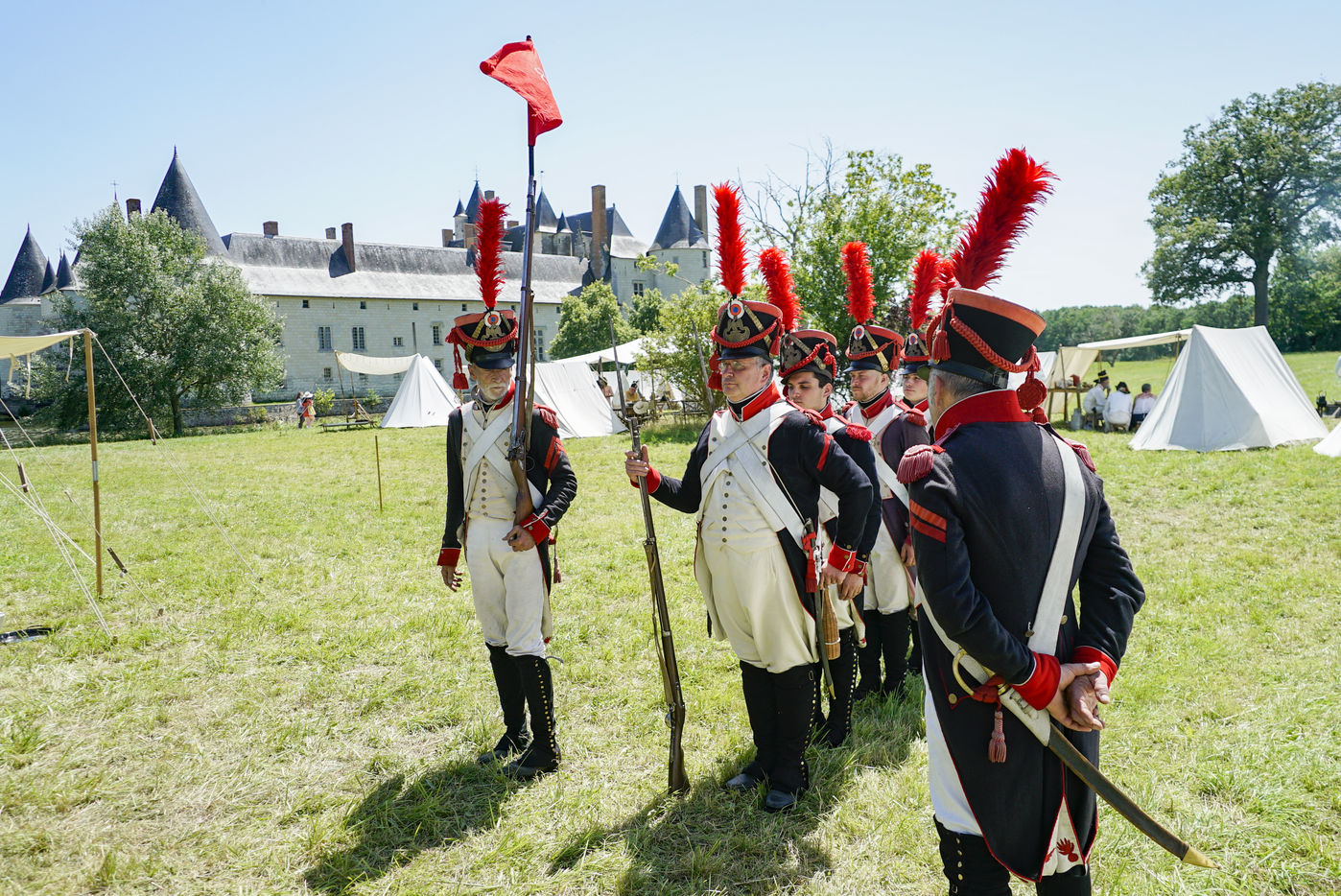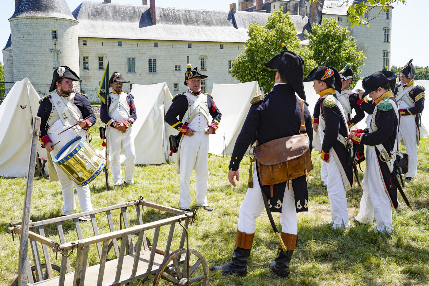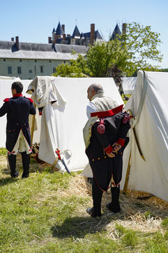 On the occasion of the bicentenary of Napoleon's death, imperial history enthusiasts are re-enacting a life-size confrontation between the French Empire and the Chouans' army at the Château du Plessis-Bourré (Maine-et-Loire, 49). In period uniforms and costumes, they recreate daily life at the time of the First Empire and the bivouacs of the Great Army.
