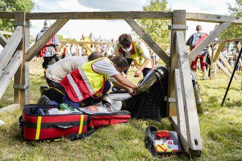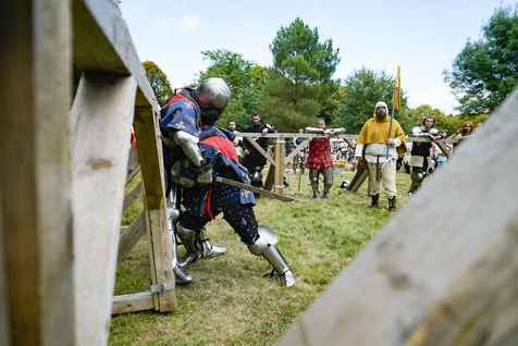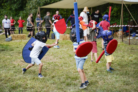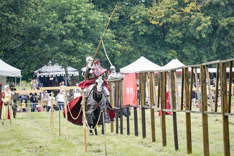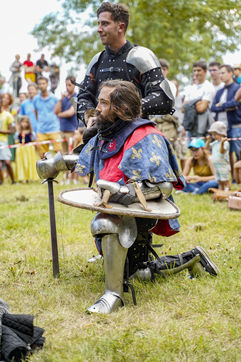Reconstitutions historiques des grands tournois de chevalerie dans la tradition du Moyen Age, au château du Plessis-Bourré, le 4 septembre 2021.