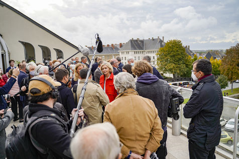 Valérie Pécresse, présidente du conseil régional d'Île-de-France, tient une réunion politique auprès de militants du parti "Les Républicains" (LR) d'Angers pour défendre sa candidature à la primaire LR, dont elle vient de reprendre la carte. Cette élection désignera le candidat, ou la candidate, des Républicains pour l'élection présidentielle de 2022.