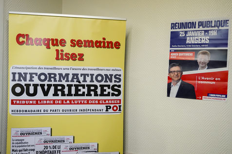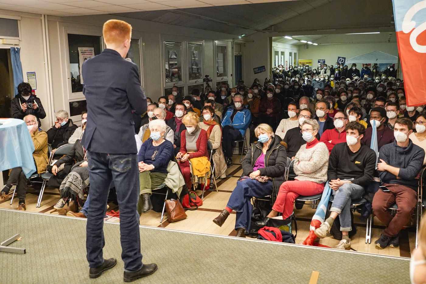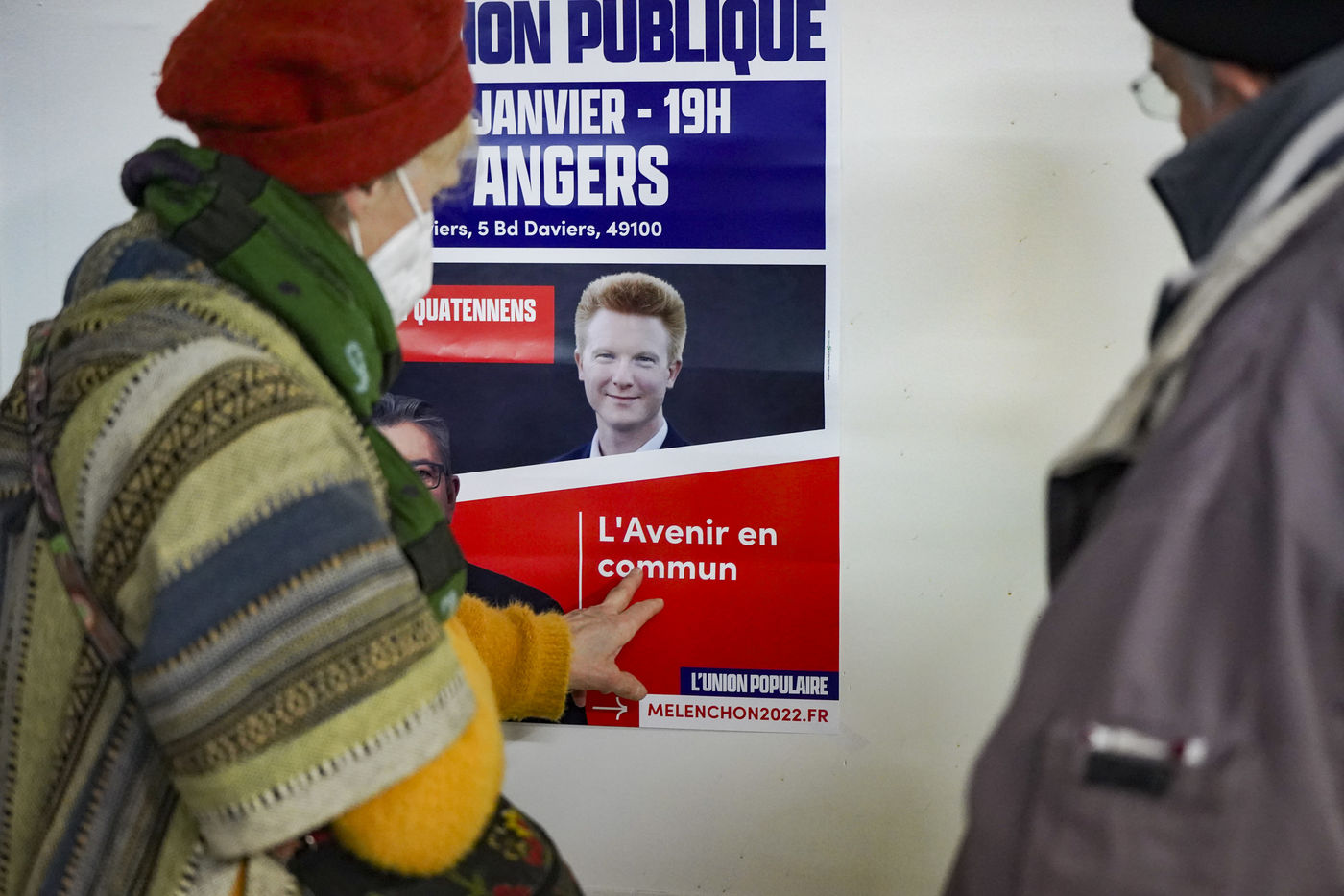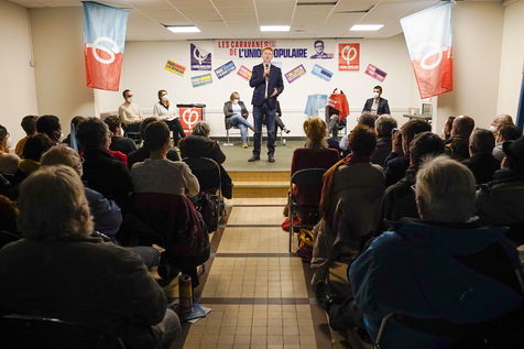 Meeting of Adrien Quatennens, deputy of the North (la France Insoumise - LFI), in Angers as part of the caravans of the Popular Union in support of the candidacy of Jean-Luc Mélenchon for the French presidential election of 2022. Nearly 300 people were gathered to listen to his speech and to get his book "génération Mélenchon" signed.