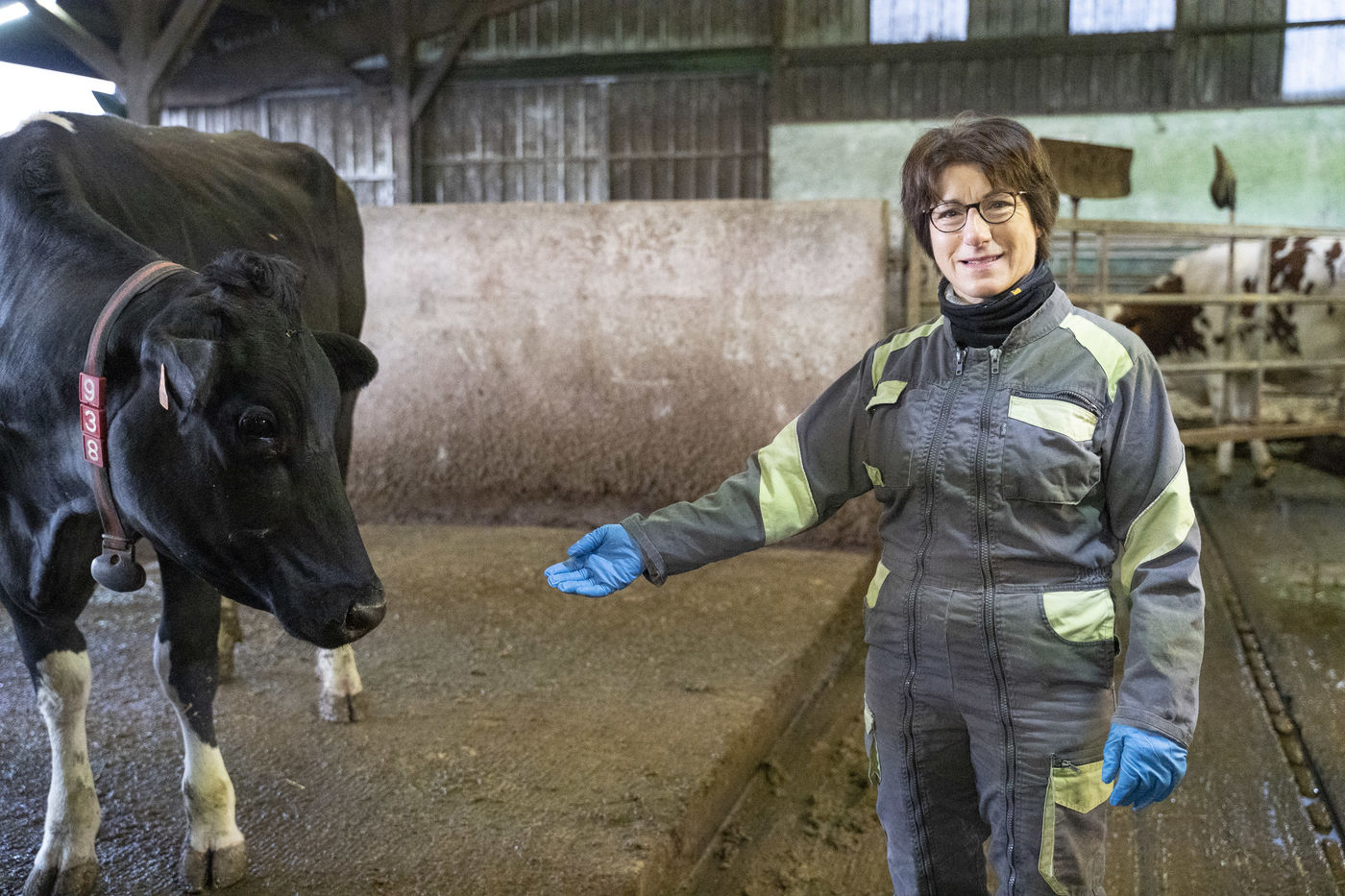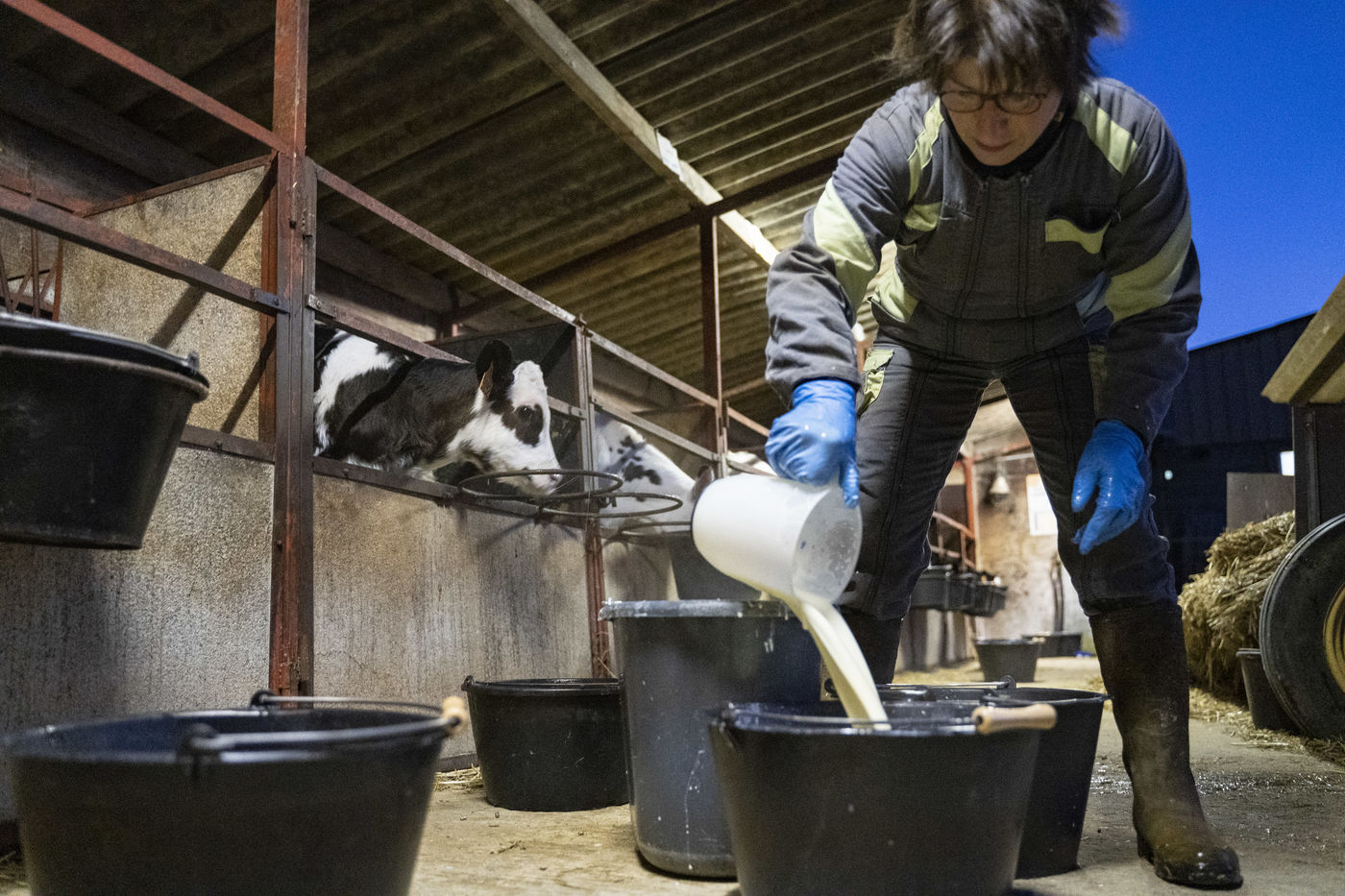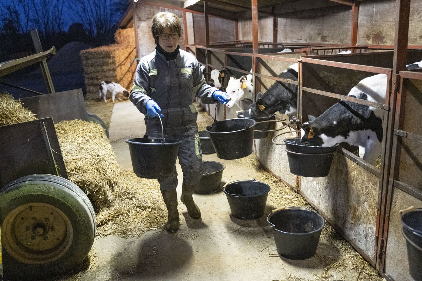 Chaque matin très tôt, elle vient s'occuper de sa soixantaine de vaches et veaux. Les nourrir. Laver les enclos et les installations. Vérifier si la machine à traire automatique fonctionne correctement. Elle doit aussi renseigner et vérifier les données informatiques d'aide à la gestion de l'exploitation et assister à la collecte du lait par le camion-citerne de la coopérative.