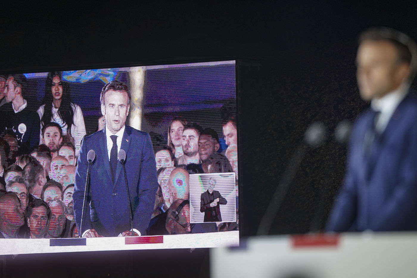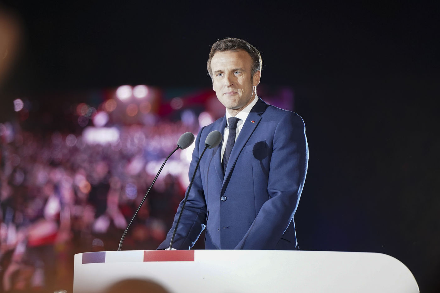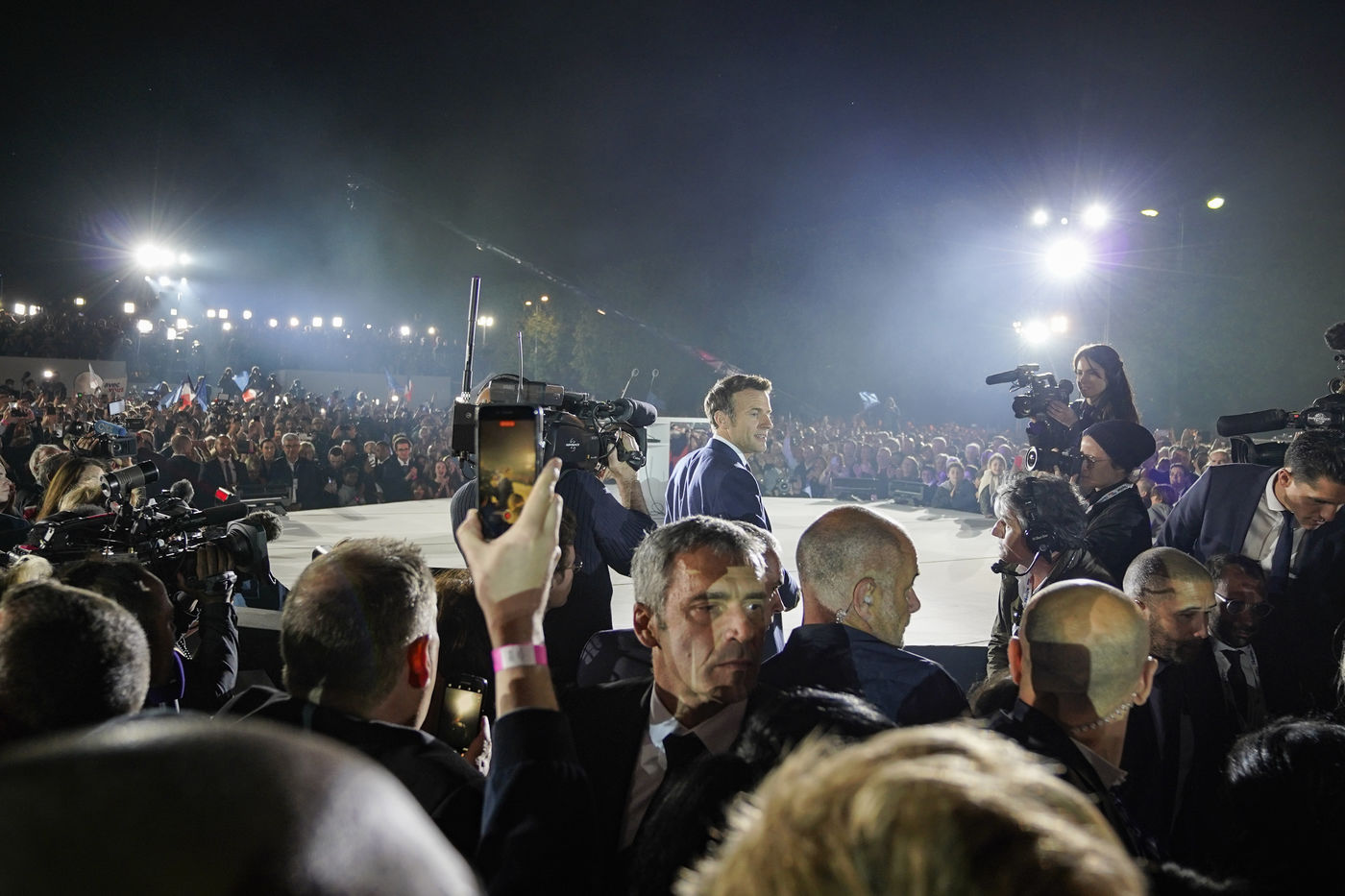 At the foot of the Eiffel Tower and on the Champ-de-Mars, Emmanuel Macron's meeting following his re-election as President of the French Republic on 24 April 2022 is being held.