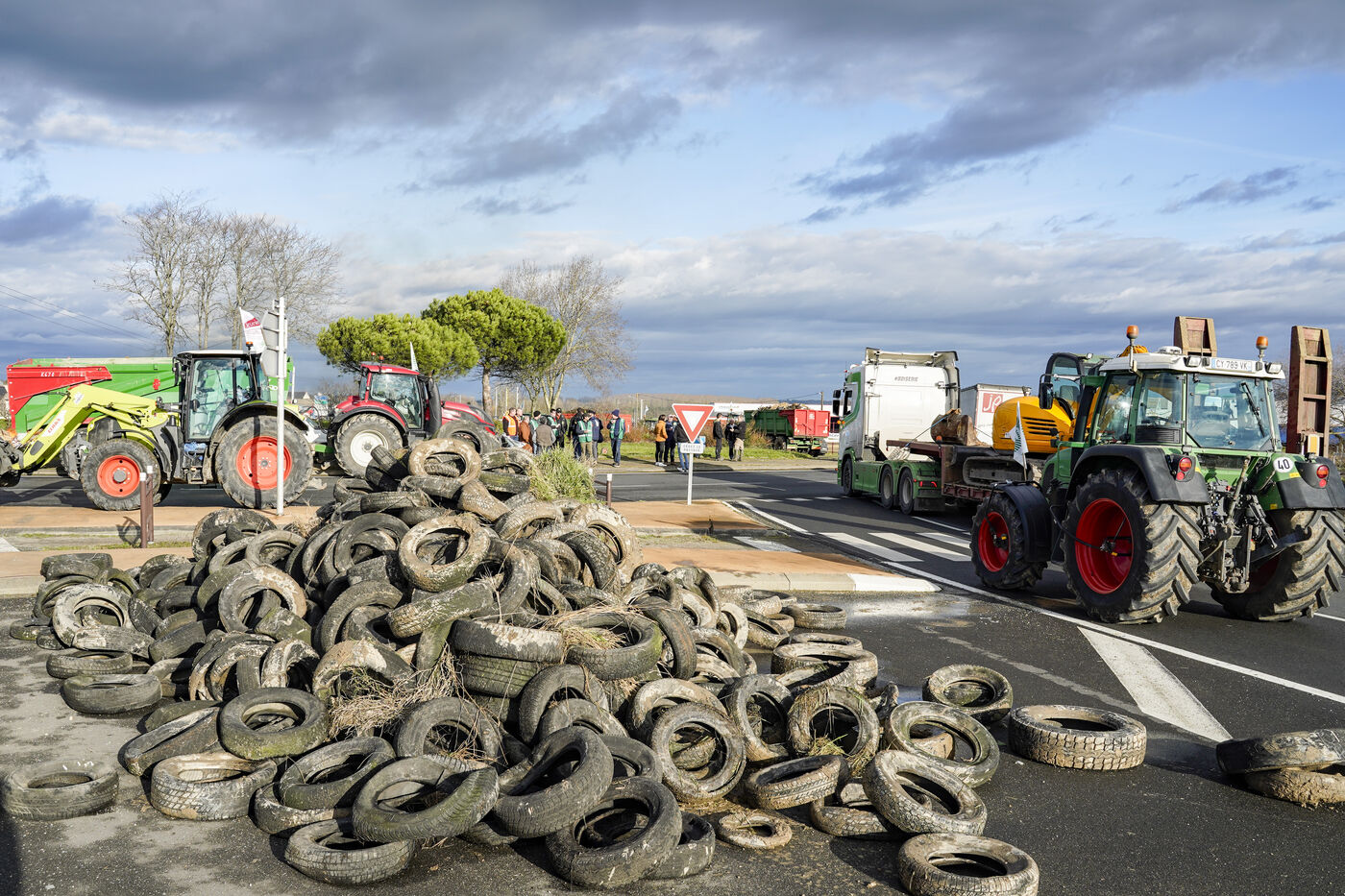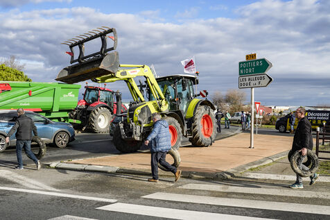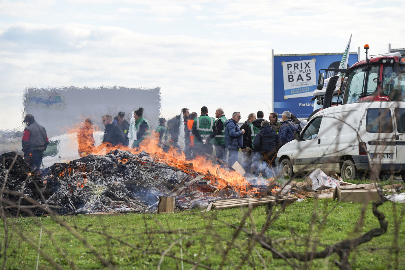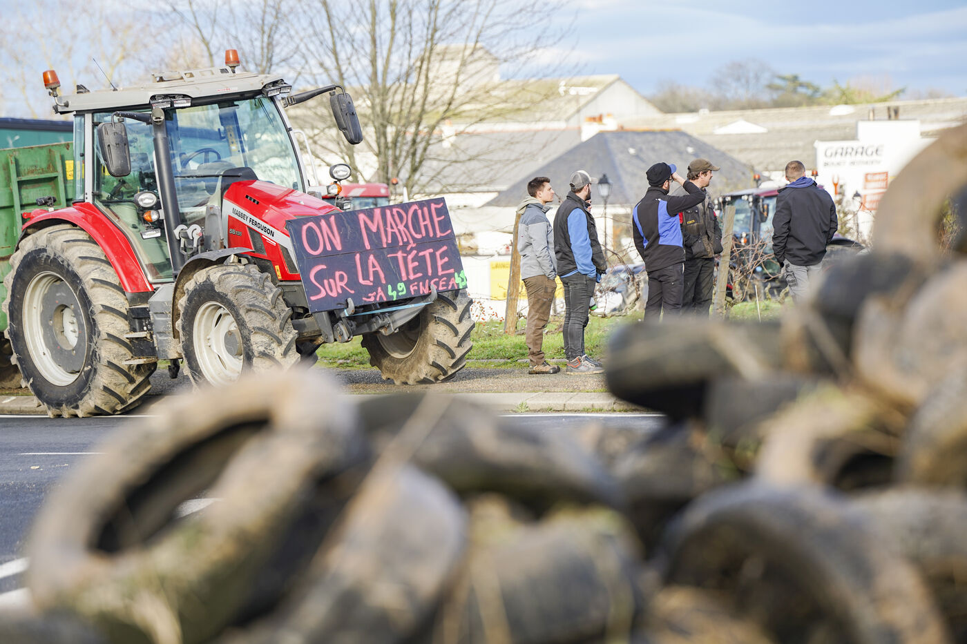 Around fifty farmers from FDSEA 49 (Fédération Départementale des Syndicats et Exploitants Agricole) have gathered with their tractors at the roundabout at the entrance to the town of Brissac-Loire-Aubance, near Angers. These angry farmers, wearing green waistcoats, have set up a roadblock to filter traffic in order to demonstrate their dissatisfaction with their working conditions, the weight of European standards to which they are subject, and their low wages. Their slogan is "more prices, less standards".