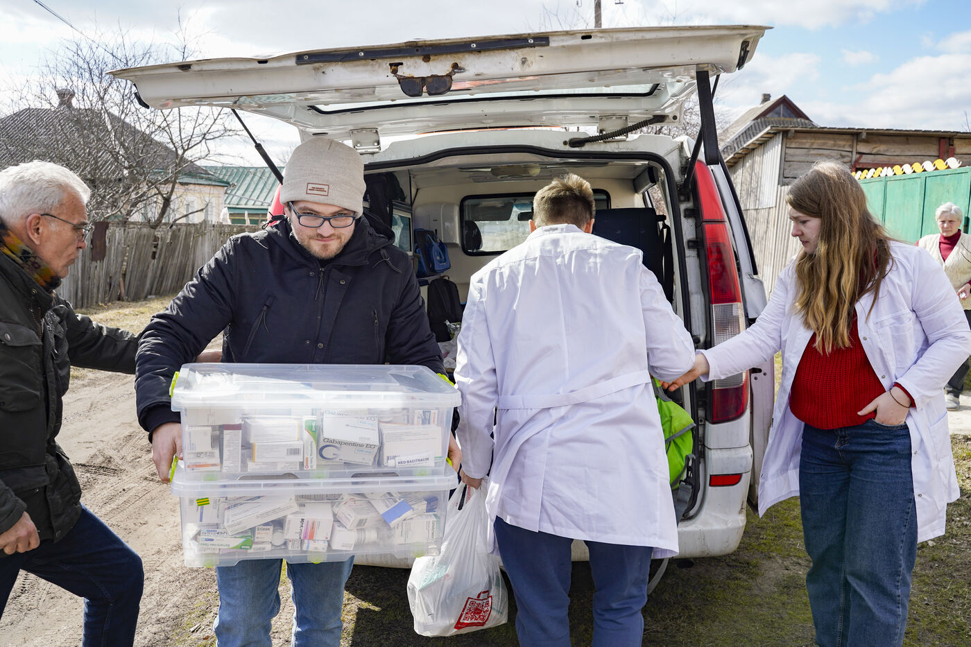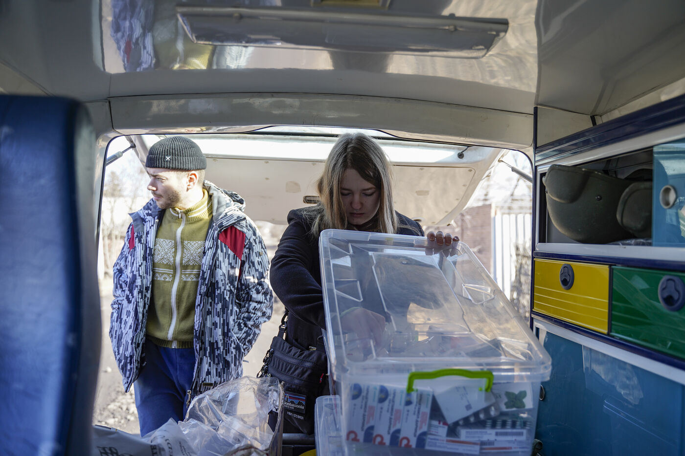 Trois à quatre fois par semaine la « clinique mobile » de l'ONG française « Ukraine is Europe » est en mission auprès des personnes âgées demeurant à l'est de Kharkiv dans des villages isolés situés à quelques kilomètres de la frontière russe. Seul moyen d'avoir un accès aux soins et à des médicaments, la venue de la « clinique mobile » est espérée et attendue. Âgées, sans moyen de locomotion et souvent pauvre, la population est isolée dans cette zone de guerre où les russes se sont retirés fin 2022 mais où leurs tirs d'artillerie sont toujours actifs.