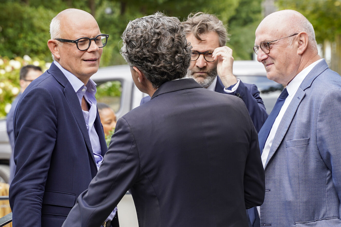 Jeudi 4 juillet 2024. Conférence de presse conjointe d'Edouard Philippe (ancien Premier ministre) et Christophe Béchu (ministre de la transition écologique et de la cohésion des territoires) en soutien aux candidats aux élections législatives de Maine-et-Loire de la majorité présidentielle (Renaissance, Horizons, Modem)