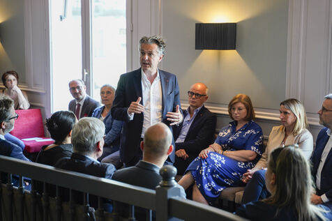 Le 4 juillet 2024, réunion des militants du parti « Horizons » dans la brasserie du Ralliement. A trois jours du second tour des élections législatives, Edouard Philippe (ancien Premier ministre) et Christophe Béchu (ministre de la transition écologique et de la cohésion des territoires) remercient les militants et soutiennent les candidats aux élections législatives de Maine-et-Loire de la majorité présidentielle (Renaissance, Horizons, Modem).