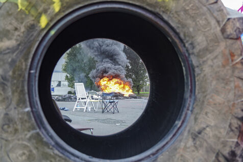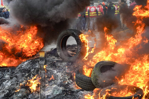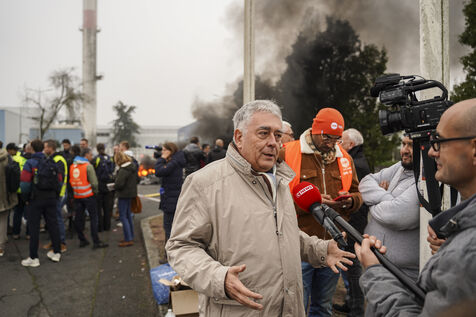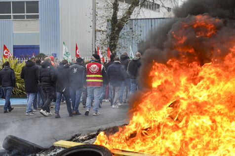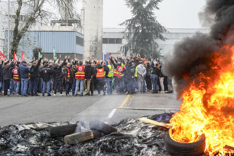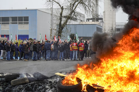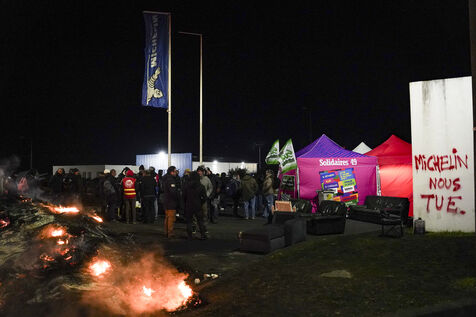 Picket line for around a hundred employees and workers at the Michelin site in Cholet. Together with their unions, they are protesting in front of their truck tyre plant against the closure of their company, which was announced the day before for 2026.