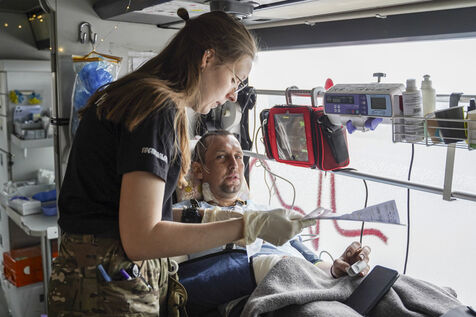 Quickly stabilised by military medical teams, the most seriously injured had to be evacuated to hospitals in Dnipro, around 100 kilometres from the position. It was against this backdrop that Dr Rusya's team of volunteers from the Hospitaliers medical battalion was called in. Based in a very modest house in a small village close to the front line, the medical team was ready to leave within 15 minutes of the call.