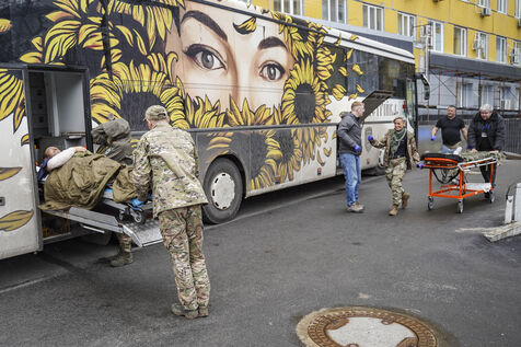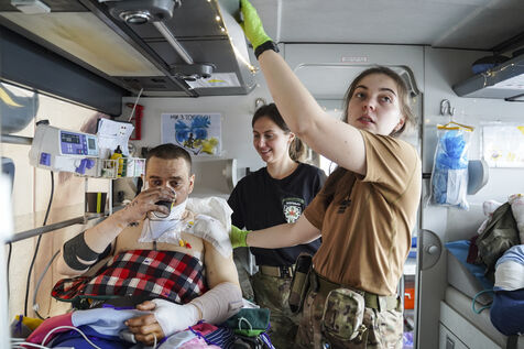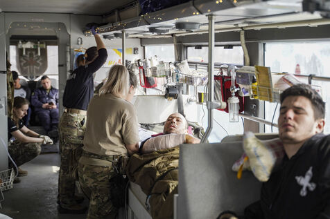 UKRAINE: YOUNG VOLUNTEERS EVACUATE THE WOUNDED FROM THE FRONT IN MEDICAL BUSES