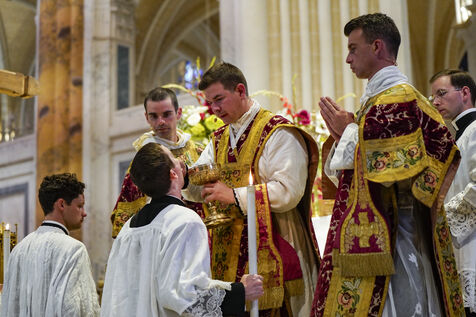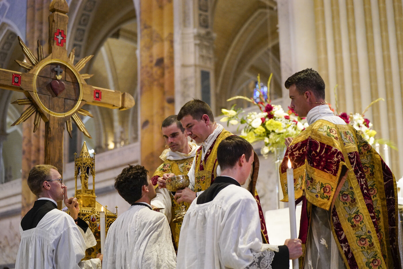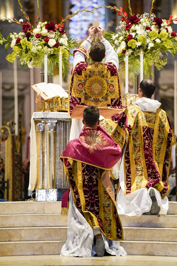 In Chartres cathedral on 9 June 2025, the closing mass of the 43ᵉ Notre-Dame de Chrétienté pilgrimage was held, celebrated according to the traditional Tridentine rite, at the end of the walk between Paris and Chartres.