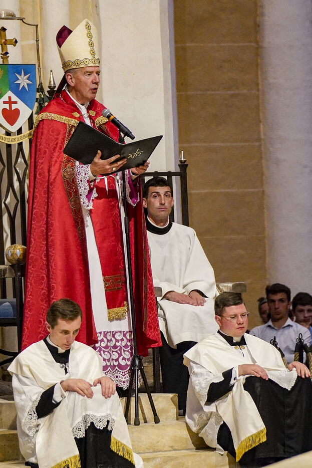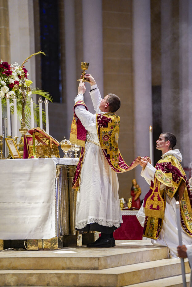 Dans la cathédrale de Chartres, le 9 juin 2025, s’est tenue la messe de clôture du 43ᵉ pèlerinage de Notre-Dame de Chrétienté, célébrée par l'Abbe Jean de Massia, aumônier général de Notre-Dame de Chrétienté, selon le rite traditionnel tridentin, au terme de la marche entre Paris et Chartres.