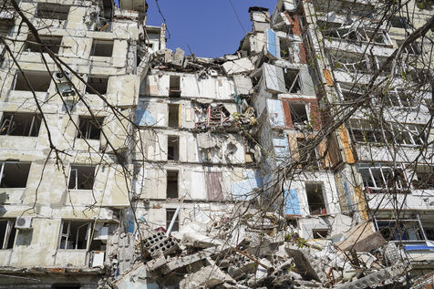 Lyubov, 63, and her husband Yuriy, 77, miraculously saved by the bombing of their house, live in this apocalyptic setting with 30 cats and 17 dogs, animals entrusted to them by their neighbours, who left in a hurry. With the help of NGOs and a generator from France, they manage to survive, despite the lack of electricity, gas and water.