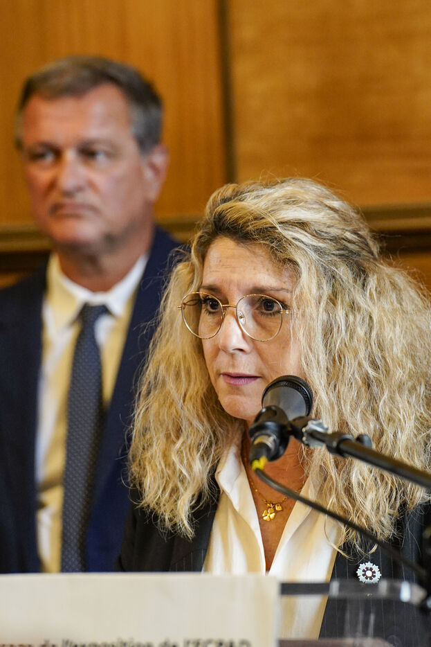 Patricia Miralles, Minister Delegate for Remembrance and Veterans Affairs, inaugurates the ECPAD (Defence Audiovisual Communication and Production Establishment) exhibition at the Visa pour l'Image 2025 festival, at the Palais Consulaire in Perpignan, on 1 September 2025.