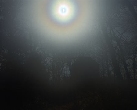 Contes d'une grand-mère que George Sand racontait à ses petites filles. Ces récits d'un autre âge proposent une explication du monde basée sur l'irrationnel. Pour ce travail, j'ai choisi d'interpréter librement ces légendes et l'univers de l'écrivain. J'ai axé mes recherches sur le paysage et les intérieurs mystérieux semblables à cet étrange château de Pictordu, où s'animent, parmi les ruines, des statues douées de vie. J'ai cherché à créer une confusion entre réel et irréel, entre peinture et photographie de manière à faire revivre l'atmosphère surnaturelle des récits de George Sand. Mettre en réponse des images du passé avec celles du présent.