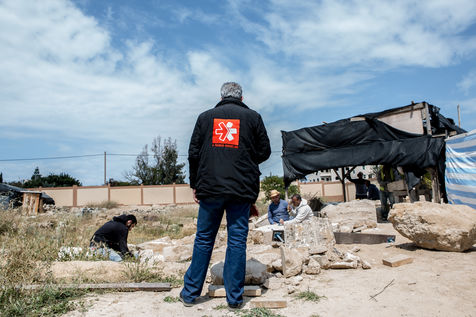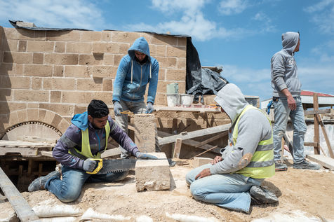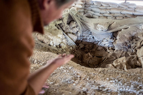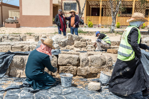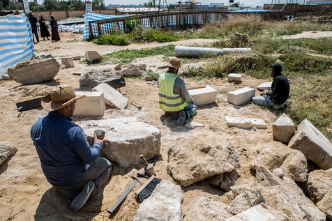 Les vestiges y sont ceux d'un monastère byzantin complet (église, chapelles, crypte, atrium, cellules, annexes), d'un établissement de bains et de bâtiments démantelés pouvant dater de la période omeyyade. Le chantier pour préserver et mettre à jour les découvertes se poursuit. 2 avril 2019, Umm El' Amr, Bande de Gaza.