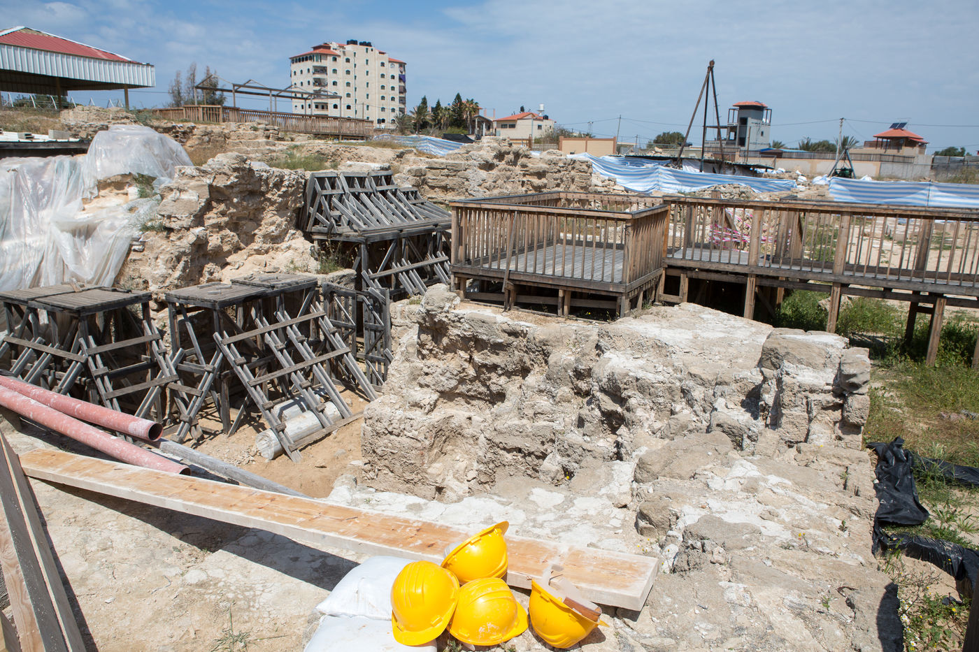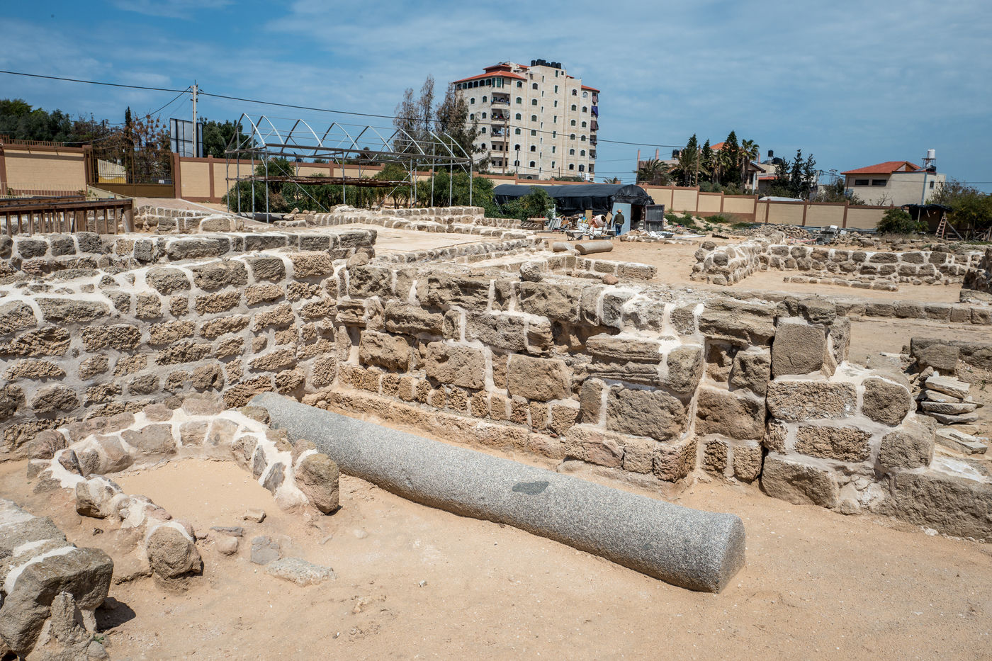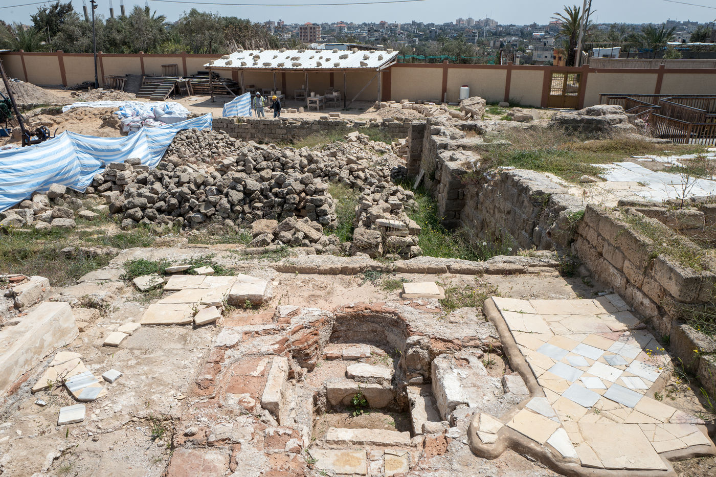 In 1997, following the construction of a real estate project on the territory of the municipality of Nuseirat, 10 km south of Gaza, a Byzantine architectural ensemble of about one and a half hectares was discovered by archaeologists from Gaza Antiquities Service.
