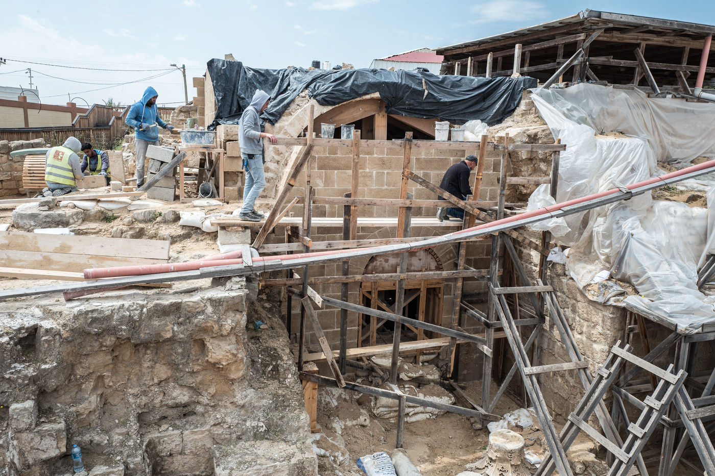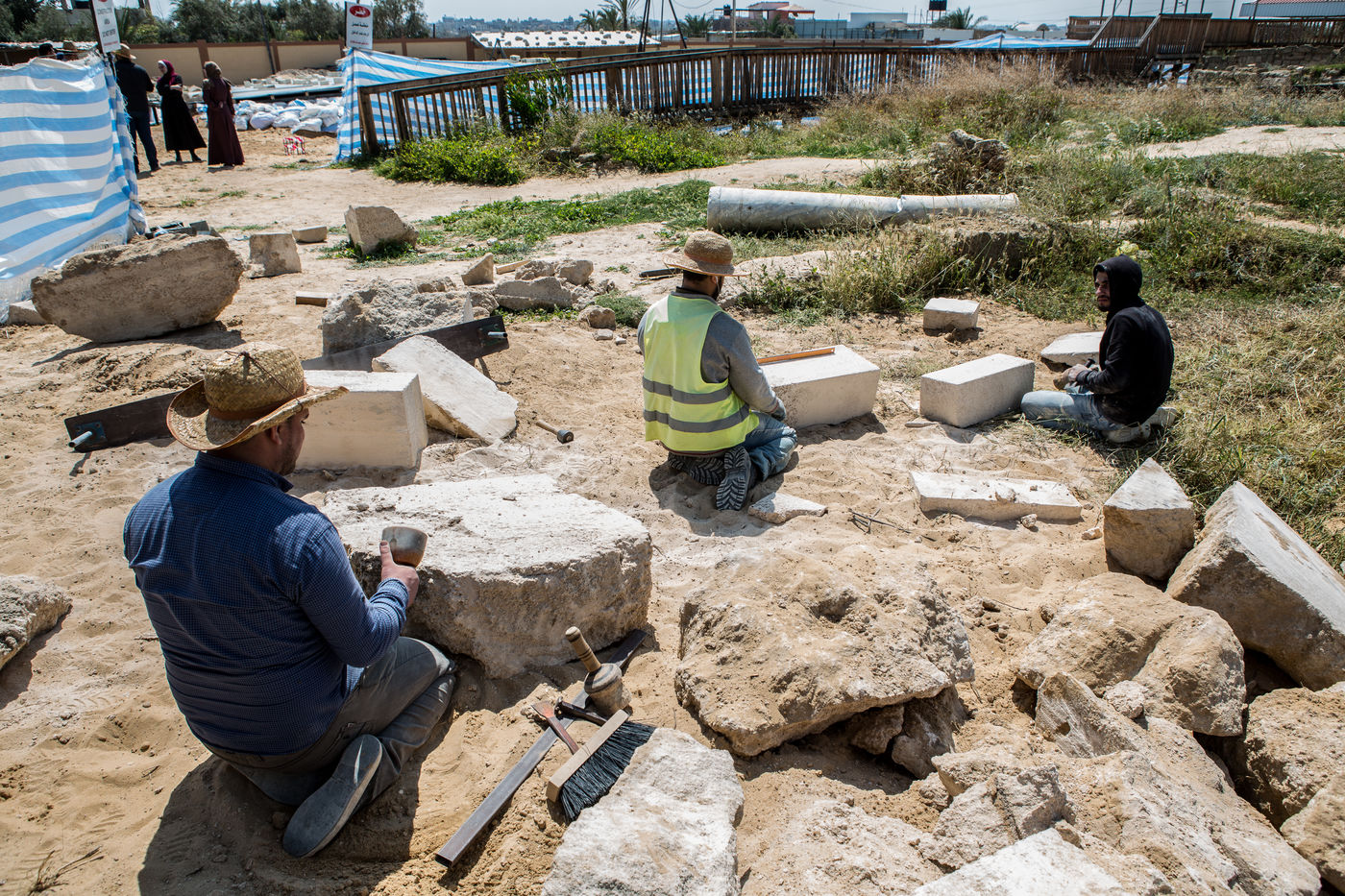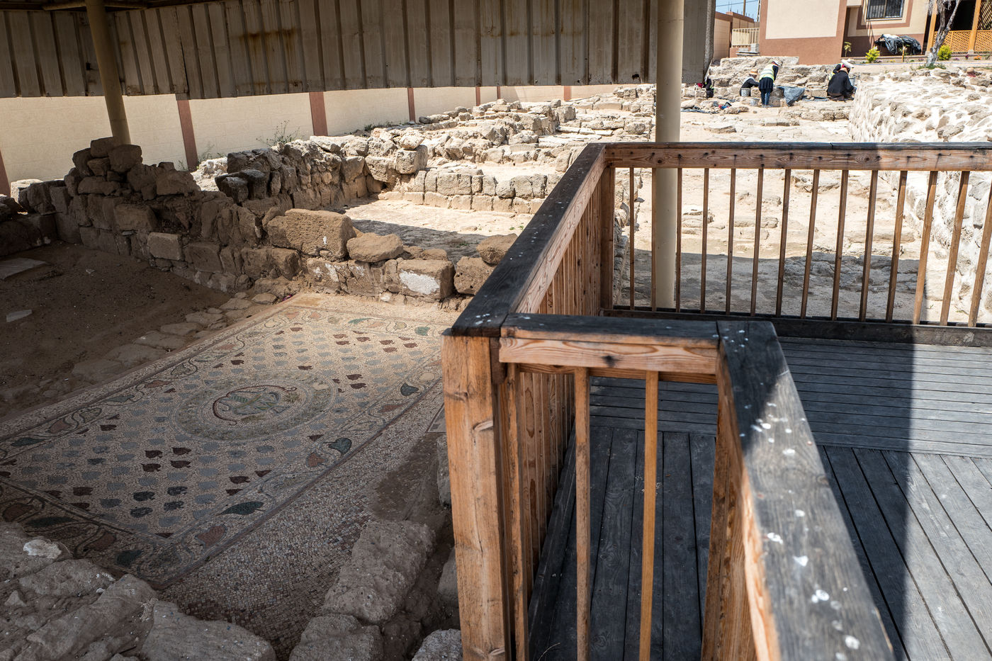 In 1997, following the construction of a real estate project on the territory of the municipality of Nuseirat, 10 km south of Gaza, a Byzantine architectural ensemble of about one and a half hectares was discovered by archaeologists from Gaza Antiquities Service.