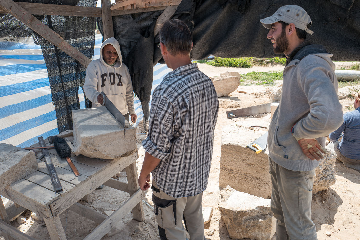 The remains are those of a complete Byzantine monastery (church, chapels, crypt, atrium, cells, annexes), a bathing establishment and dismantled buildings that may date from Umayyad period. The site to preserve and update the discoveries continues.