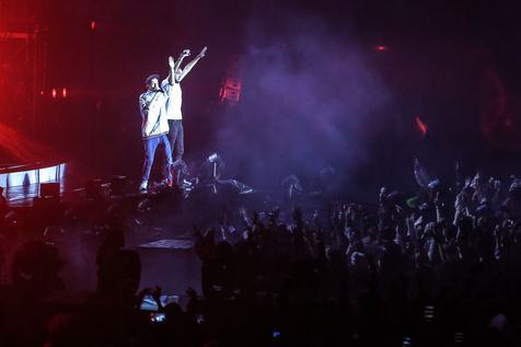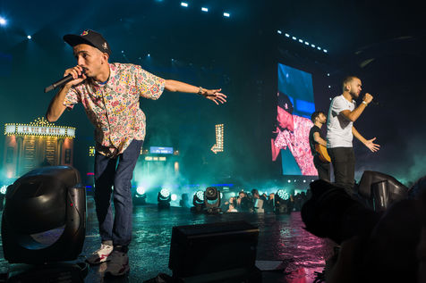 Les deux rappeurs Bigflo & Oli lors de leur concert au Stadium de Toulouse qu'ils ont décidé de remplir les 24 et 25 mai. Bigflo et Oli, parfois abrégé B&O, est un groupe de rap français, originaire de Toulouse. Il est composé de Florian, Bigflo et Olivio, Oli. Le duo sort son premier album La Cour des grands en 2015, il est certifié disque d'or moins de quatre mois après sa sortie puis disque de platine en France. Ils sont à ce jour les plus jeunes rappeurs français à détenir ces récompenses.