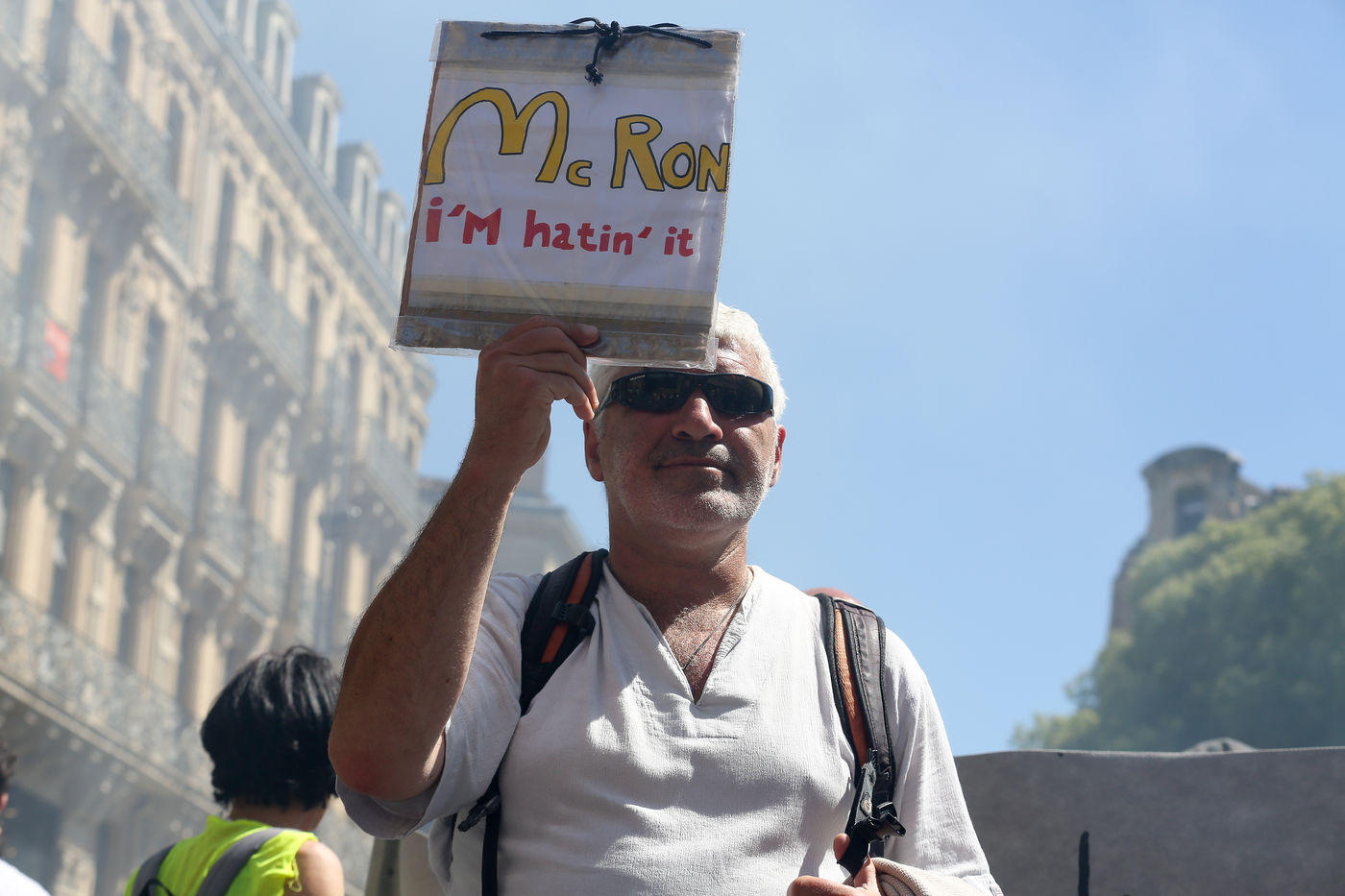 Un millier de personnes ont défilé dans le centre ville de Toulouse dans le sud de la France lors de l'acte XXIX du mouvement des Gilets Jaunes. Le mouvement a commencé en France le 17 novembre 2018 pour protester dans un premier temps contre la montée du prix des carburants, pour le pouvoir d'achat, la création du RIC et le mouvement s'est transformé en une grande révolte contre le président français Emmanuel Macron. Environ 1000 personnes ont manifesté calmement avant que la police utilise des gaz lacrymogènes pour disperser la manifestation. 1er juin 2019, Toulouse, France.