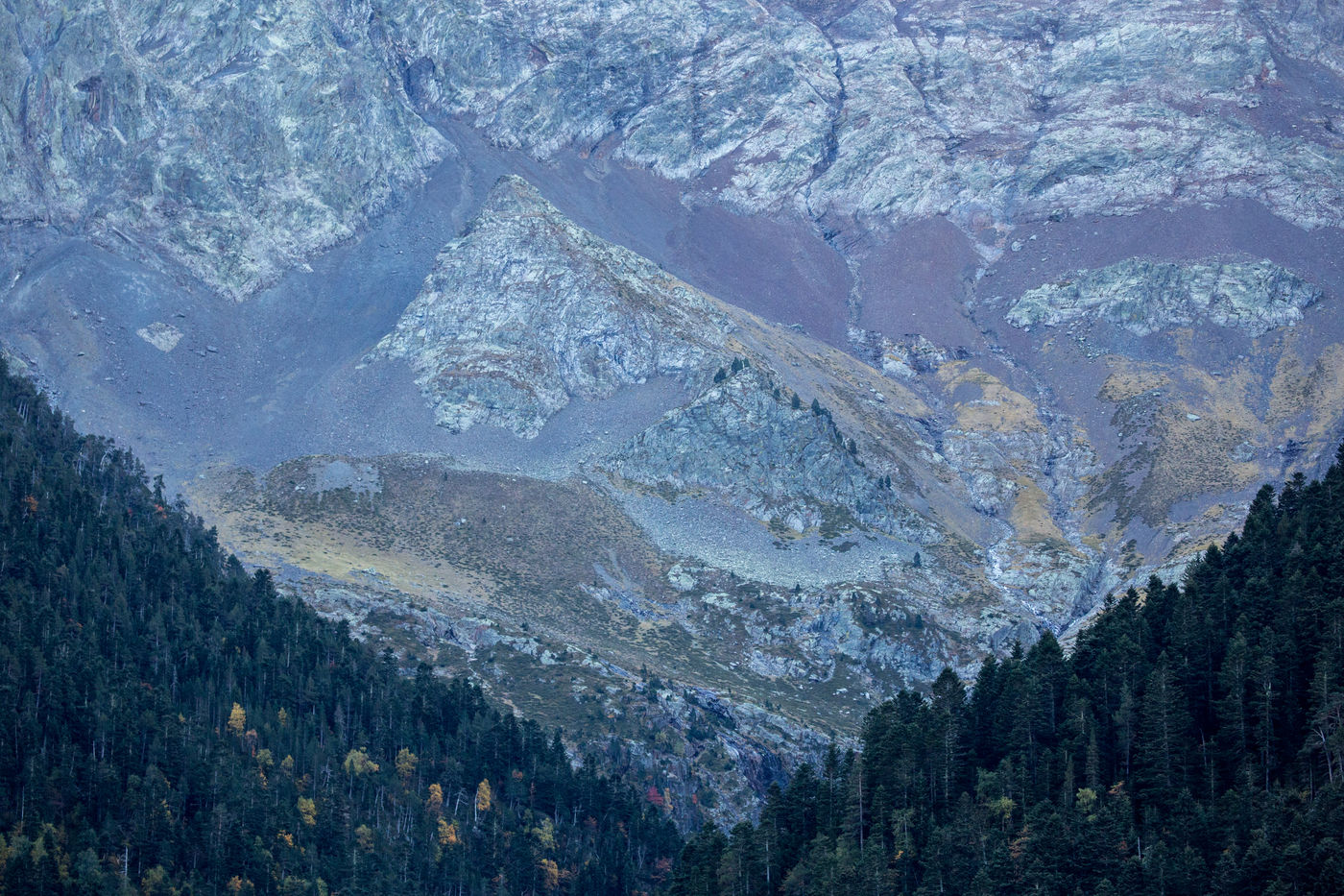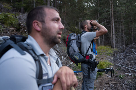 Loic et David, deux agents de l'ONCFS (office national de la chasse et de la faune sauvage) effectuent leur patrouille dans la vallee du Rioumajou dans le département des Hautes Pyrenees. Leur mission consiste a récolter des poils d'ours recupéres sur des arbres piegés avec du smola, un produit qui attire les plantigrades et à veiller au bon fonctionnement des pièges vidéos.