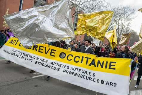 Des manifestants défilent dans le centre ville de Toulouse dans le sud de la France pour protester contre la réforme des rétraites prévue par le gouvernement d'Edouard Phillipe. A l'appel de nombreux syndicats, c'est un autre jour de mobilisation dans l'ensemble du pays.