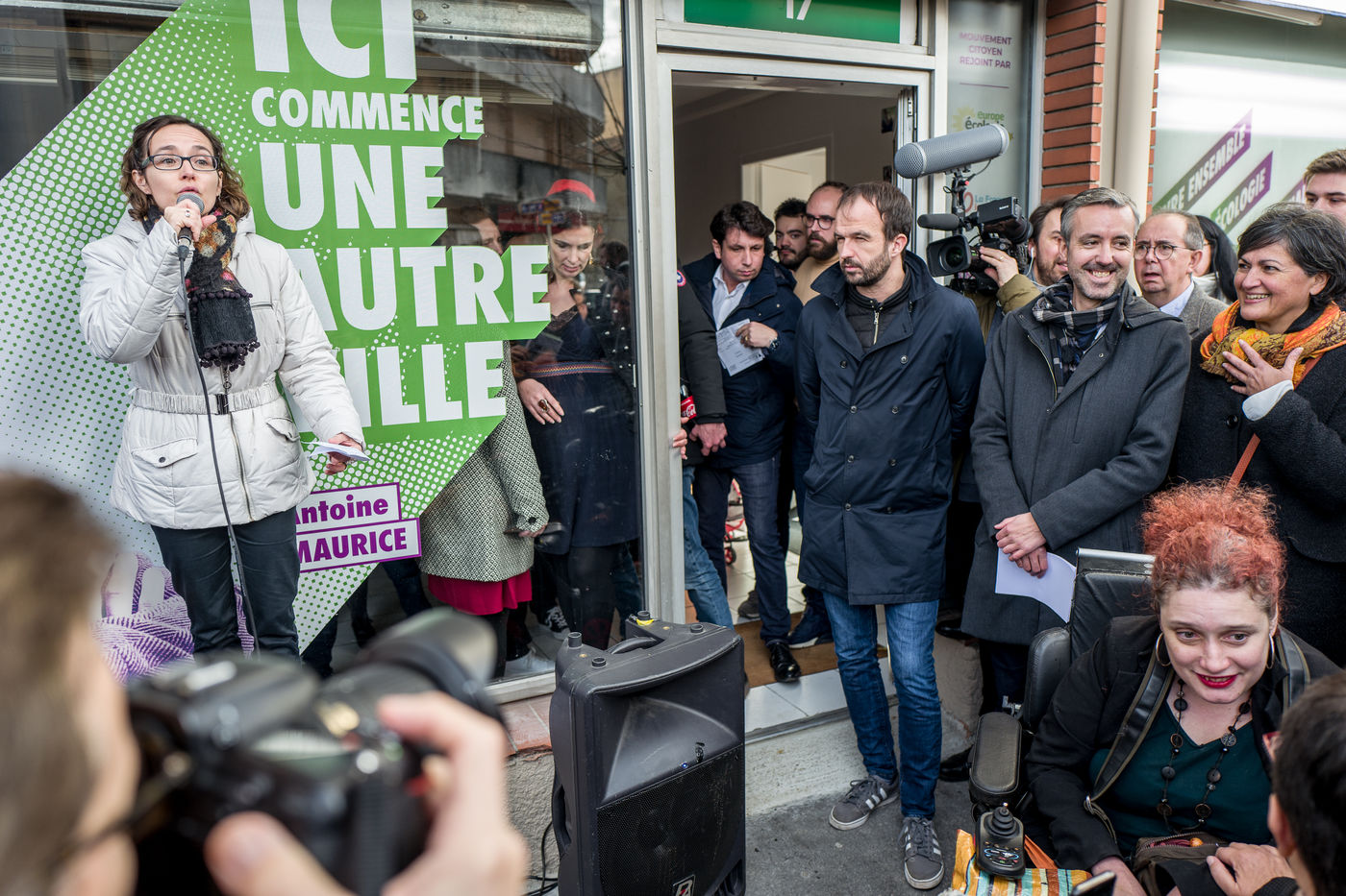 Lors de l'inauguration du local de campagne du parti politique Archipel Citoyen qui porte la campagne Toulouse en commun et défend un renouveau politique fondé sur la democratie permanente pour les municipales de Toulouse 2020 avec Antoine Maurice comme tête de liste.