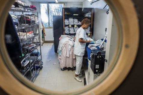 Scènes de vie dans le tout nouvel EPHAD Antoine Saint Exupery le jour de l'inauguration officielle. Un EHPAD est un établissement d hebergement pour personnes agees dependantes, celui ci comprend deux unités de 33 lits. 20 février 2020, Toulouse, France.