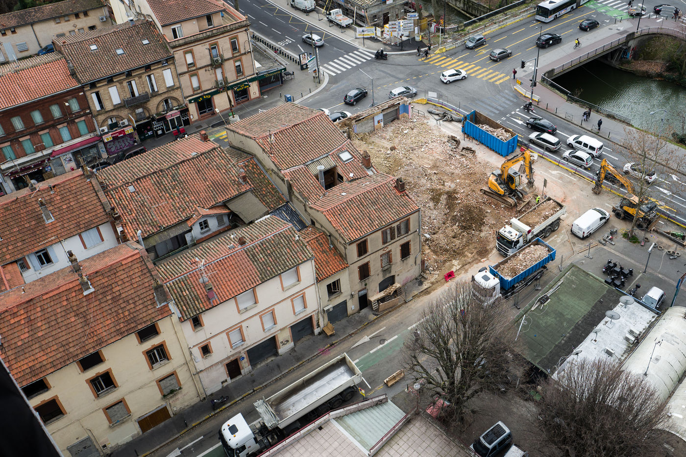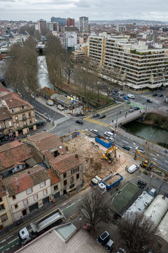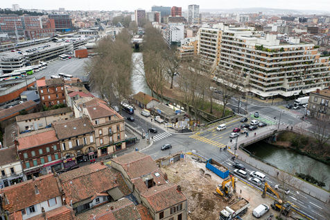 Depuis 2011, chaque bâtiment ou immeuble vacant du quartier Matabiau Bonnefoy a été racheté par la mairie de Toulouse pour faire sortir de terre le nouveau quartier Grand Matabiau quais d'Oc, il s'articule autour de l'arrivée de la Ligne à grande vitesse LGV. Sous le nom de Teso (Toulouse EuroSudOuest), le projet a été declaré d'utilite publique en décembre 2019. 11 février 2020, Toulouse, France.