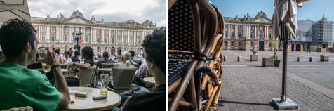 Assemblage de deux images en dyptique pour illustrer le confinement lié à la crise du Coronavirus alors que la France est passée en confinement le 17 mars à midi pour contenir l'épidémie sur le territoire.
