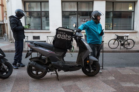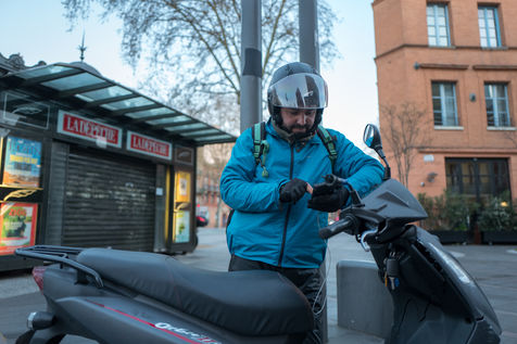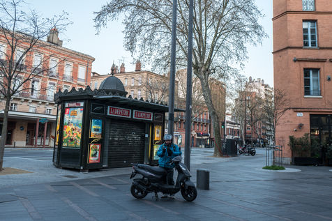 Malgré la crise qui touche le pays avec la crise du coronavirus et la mise en place du confinement depuis le 17 mars 2020, les plateformes de livraison de repas sont autorisées à poursuivre leurs activités. Sebaa, 42 ans continue sur son scooter de livrer pour Uber Eats des repas à domicile dans le centre ville de Toulouse.