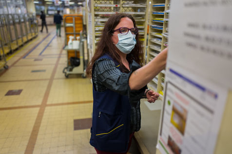 Laetitia est factrice au centre de tri au bureau de Poste du Capitole et elle effectue sa tournée dans le centre ville alors que le France est en confinement depuis le 17 mars 2020 pour lutter contre l'épidémie du Coronavirus, Covid19.