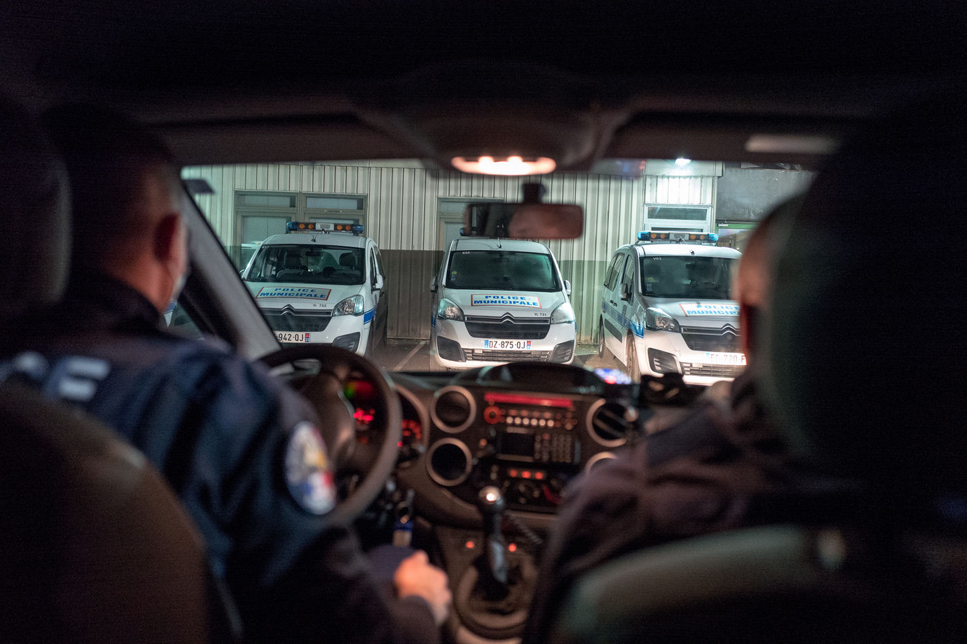 Un équipage de la police municipale en patrouille lors de la première soirée de couvre feu mis en place dans certaines agglomérations françaises pour lutter contre l'épidémie du Coronavirus, Covid19.