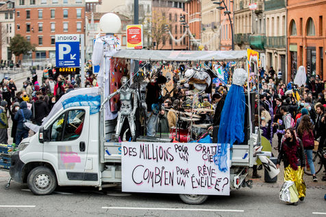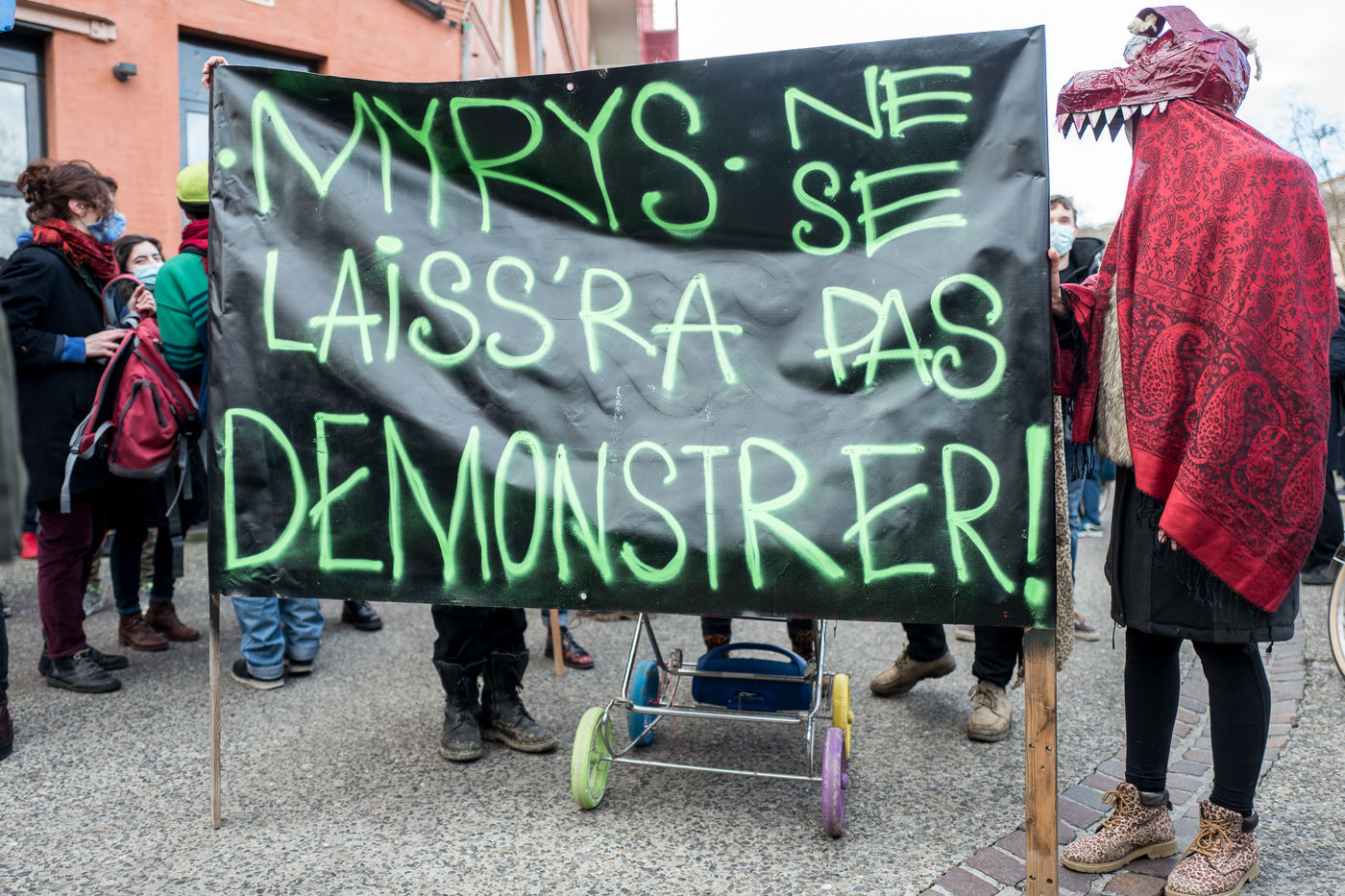 Demonstration against the administrative closure of the artist collective Mix art Myrys. Present for more than 25 years in the artistic life of the city of Toulouse, it is a space of human and collective experimentation, a place that has become a laboratory for artistic research in creation as well as in diffusion.