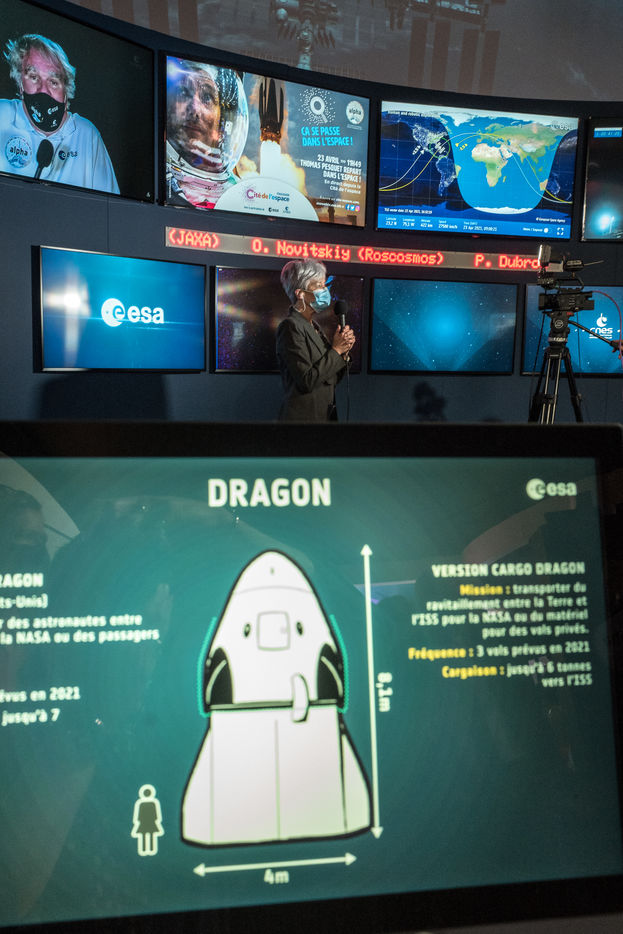 The Cite de l Espace is broadcasting live the take-off of the Falcon 9 launcher. Astronaut Thomas Pesquet is taking part in his second space mission, the Alpha mission and he is the first ESA - European Space Agency astronaut aboard a Space X's Crew Dragon capsule. For six months in the ISS, the international space station, the French will conduct around a hundred scientific experiments.