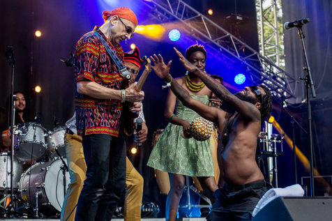 Concert of the Freres Smith afro-beat band during the 2021 edition of Rio Loco, a music festival organized by the town hall of Toulouse which opened after long months without any cultural life. This year is the theme of Africa in a specific context with the health pass to fight against the epidemic of the Coronavirus, Covid19.