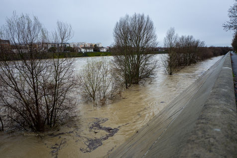 En bord de Garonne, on constate une imortante montée des eaux suite à de fortes pluies.