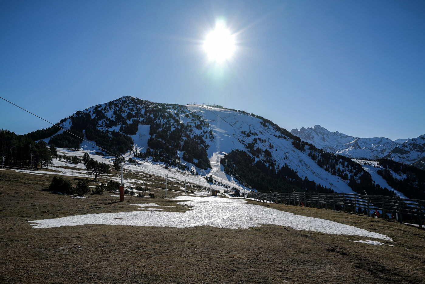 Sur le domaine skiable d Ax 3 domaines avec très peu de neige causé par le redoux et les températures anormalement élevées pour la saison.