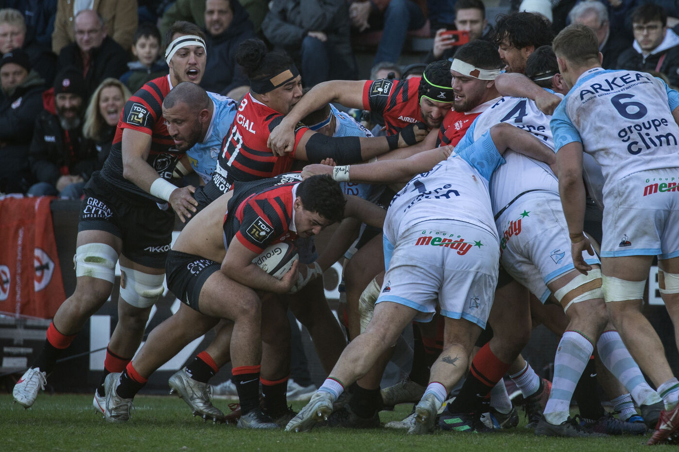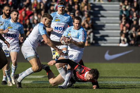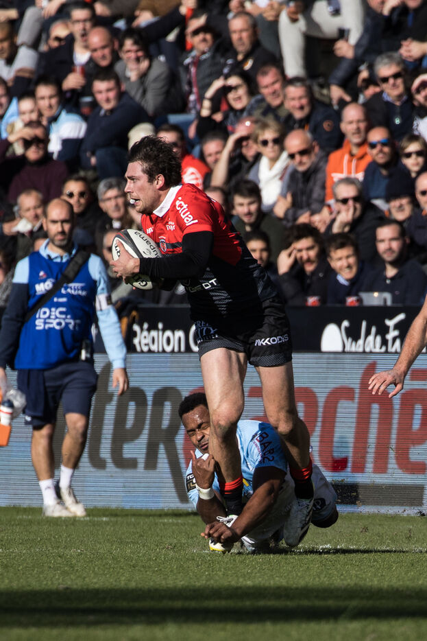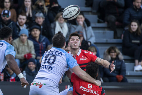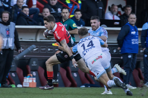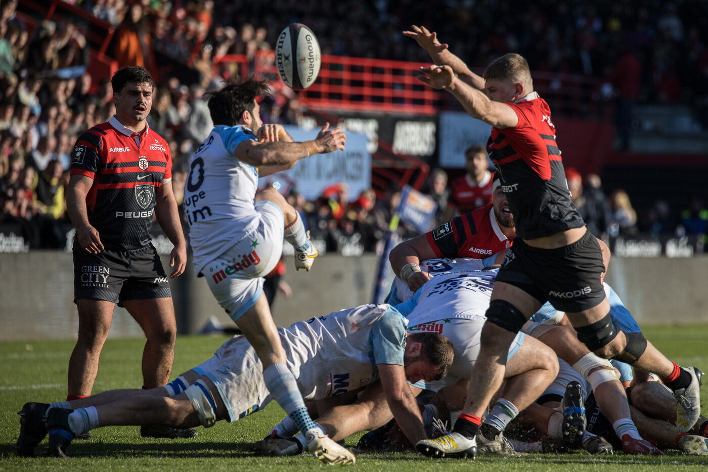 Match de rugby du Top 14 francais entre Toulouse, Stade Toulousain et Bayonne, Aviron Bayonnais au stade Ernest Wallon de Toulouse, dans le sud-ouest de la France.