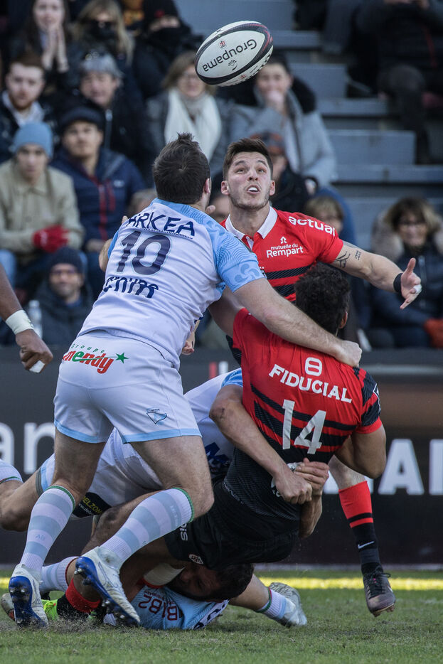 French Top 14 rugby match between Toulouse, Stade Toulousain and Bayonne, Aviron Bayonnais at the Ernest Wallon stadium in Toulouse, southwestern France.