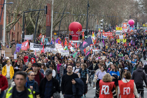 Plusieurs milliers de personnes ont defile a l occasion de la journee internationale des droits des femmes.c est une journee internationale mettant en avant la lutte pour les droits des femmes et notamment pour la reduction des inegalites par rapport aux hommes.
