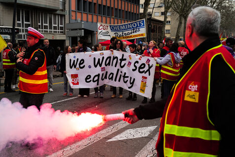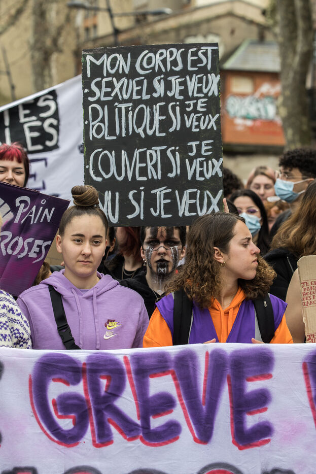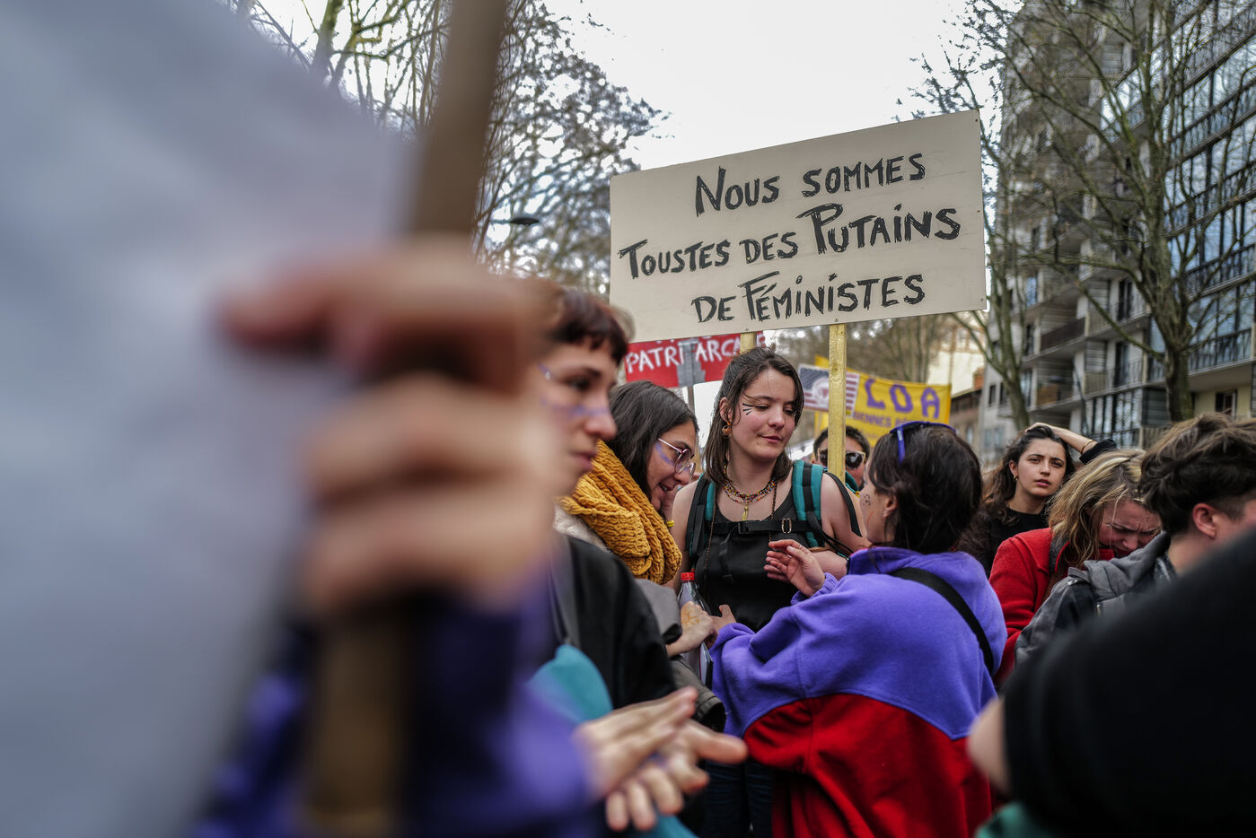 Several thousand people paraded on the occasion of international women s rights day With many slogans. An international day highlighting the struggle for women s rights and in particular for the reduction of inequalities compared to men.
