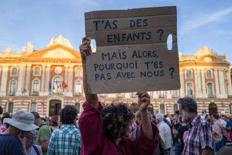 300 people gathered to support hunger strikers opposed to the A69 motorway project linking Toulouse to Castres, a symbolic wall was built at Place du Capitole.