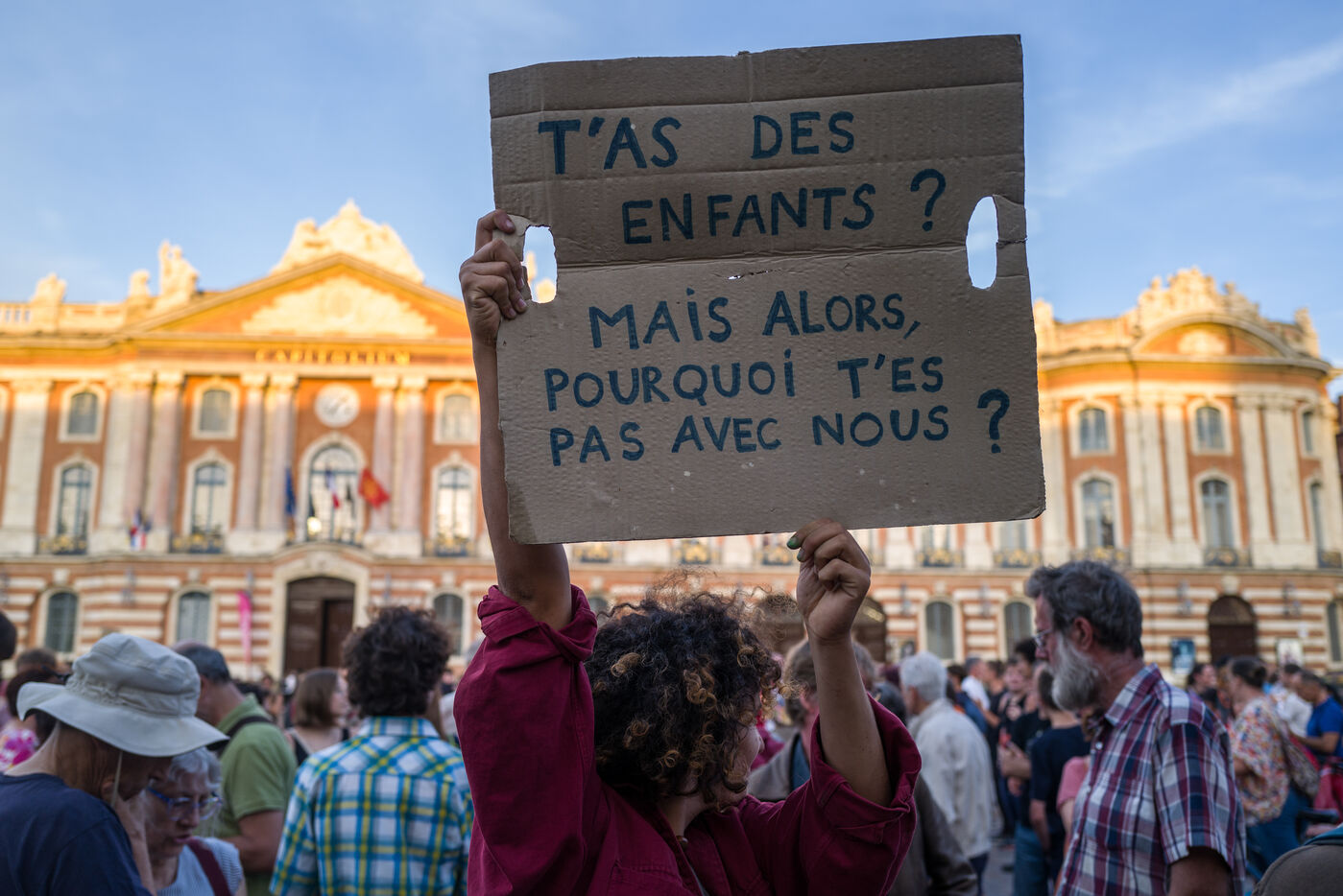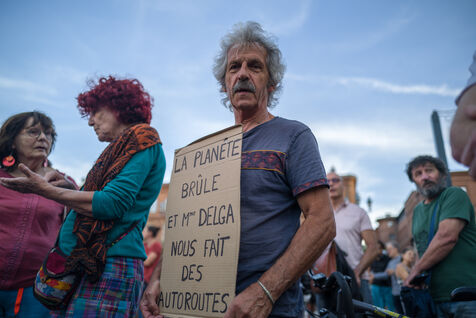00 personnes se sont rassemblées pour soutenir des grévistes de la faim opposes au projet d autoroute A69 reliant Toulouse a Castres, un mur symbolique a ete construit place du Capitole.