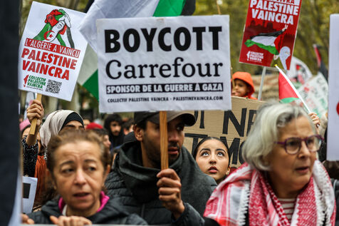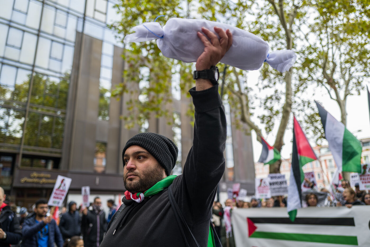 Demonstration in the streets of the city center to denounce the Tsahal bombings on the Gaza Strip and the deaths of civilians and the end of the blockade imposed by the State of Israel in response to the Hamas terrorist attack on October 7.