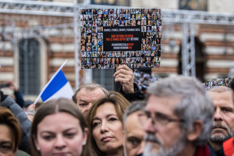 France, Toulouse, 2023-11-12. De nombreuses personnes se sont rassemblees a l appel du maire de Toulouse Jean Luc Moudenc Place du Capitole pour dire non a l antisemitisme, ils ont observes une minute de silence et ont chante la Marseillaise.