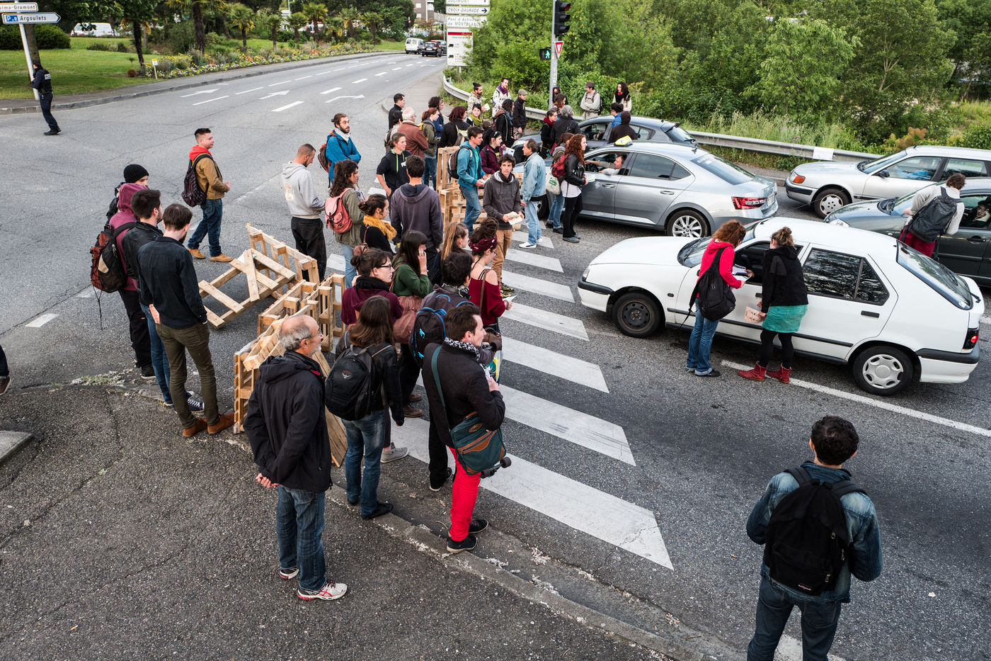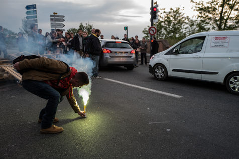 Early in the morning , several dozen protesters , including the movement Night Stand , conducted filter dams to bypass outputs as here in Balma - Gramont to denounce the work required legislation by the government of Manuel Valls and his Minister of Myriam work El- Khomri . Many slowdowns and closures were recorded while was to take the big demonstration called by the Inter in the afternoon . Toulouse, France - May 26, 2016