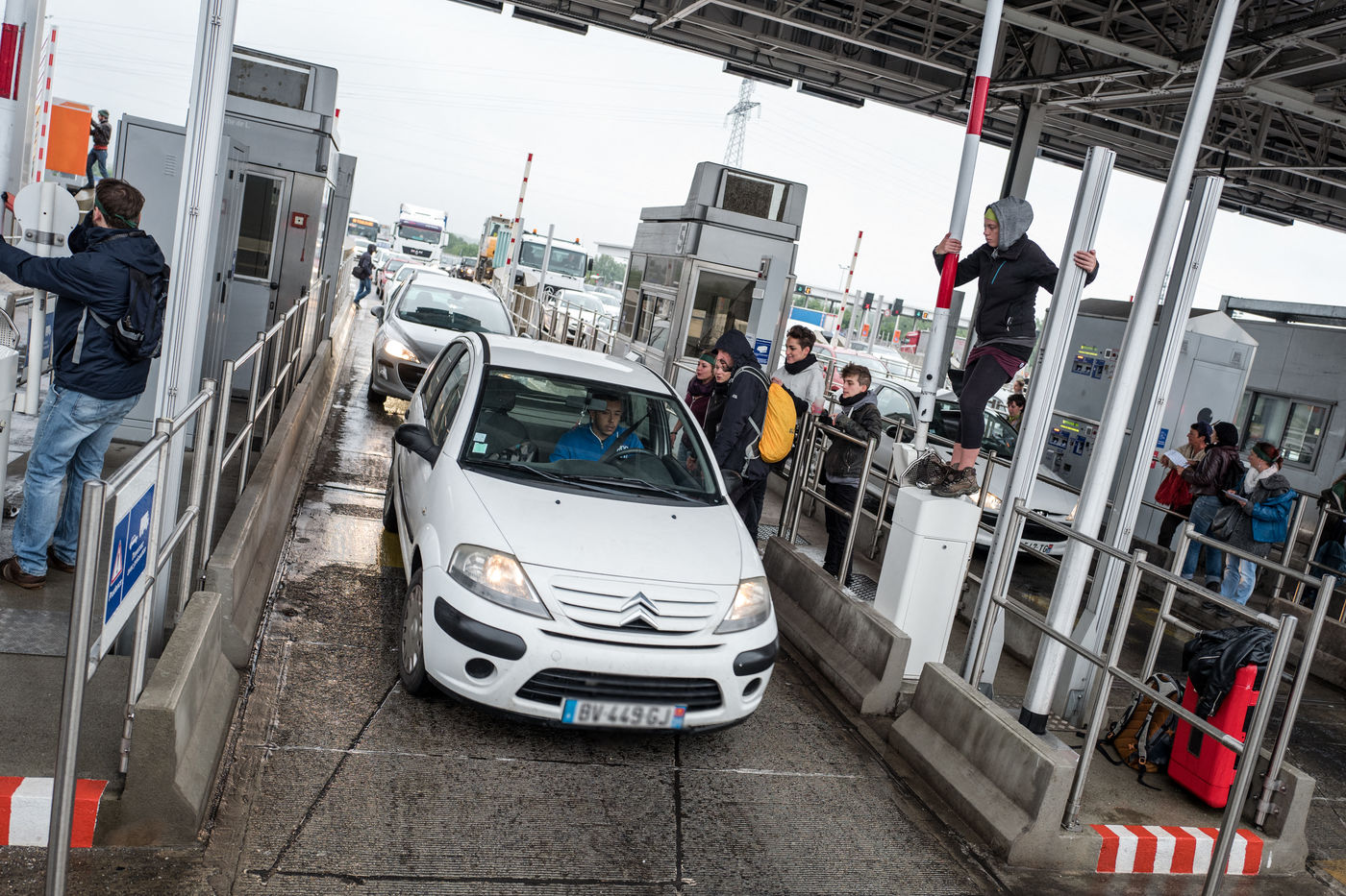Members of the movement Night Stand opposed the Labour Act have opened the toll gates to allow vehicles.